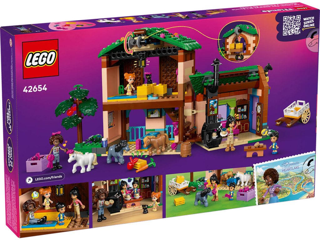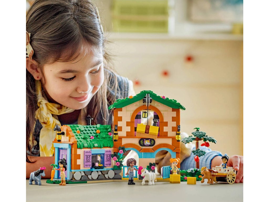 LEGO 42654 - Ranč s poníky a stáj z produktové řady LEGO FRIENDS - Kvalitní dětská plastová stavebnice v krabici.Představujeme vám stavebnici, kterou si zamilují všichni milovníci koní! Stavebnice Ranč s poníky a stáj inspiruje holky a kluky od 7 let k vymýšlení vlastních příběhů o přátelství a zvířátkách. Součástí je sestavitelný ranč s poníky se stájemi a obytnými prostory, vozík, 2 minipanenky, 2 mikropanenky, figurka kočky, 3 figurky poníků a spousta doplňků pro kreativní hraní. Děti se vydají na nekonečná dobrodružství s Aliyou, Liann, Victorií a Ellou. Hřebelcování a krmení 3 poníků bude spousta zábavy! Dokonce tu najdete i funkční výtah na seno, s jehož pomocí přemístíte balíky sena do seníku nebo na vozík. V ranči je útulný obývací prostor a seník, ve kterém budou kamarádky spát nad stájí – splněný sen každého milovníka koní!