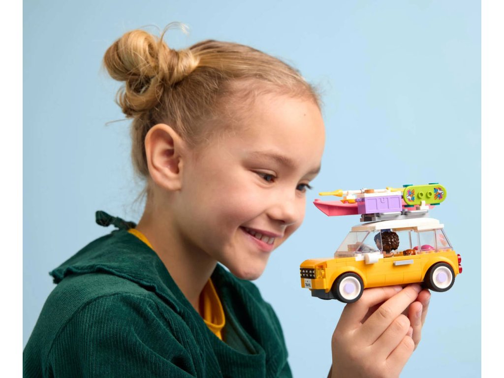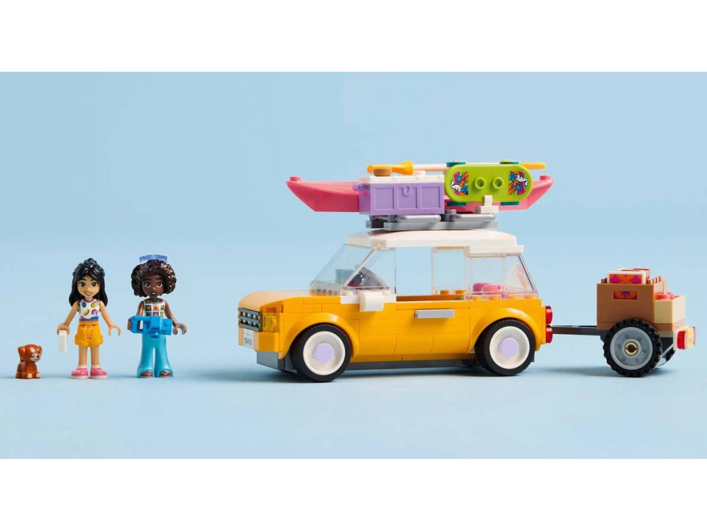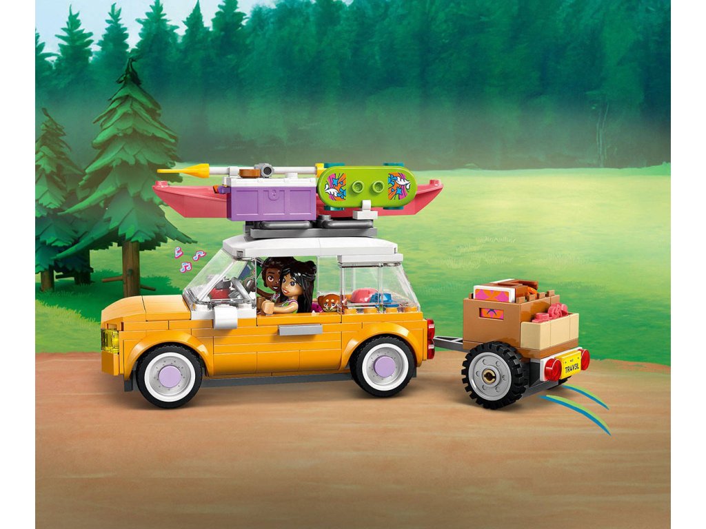 LEGO 42659 - Výlet v autě s přáteli z produktové řady LEGO FRIENDS - Kvalitní dětská plastová stavebnice v krabici.Vstupte do světa dobrodružství se stavebnicí Výlet v autě s přáteli pro holky a kluky od 6 let. Tato akcí nabitá stavebnice obsahuje model auta s přívěsem, 2 minipanenky LEGO Friends, roztomilou figurku štěňátka a spoustu doplňků, které inspirují k zábavnému hraní. Vydejte se s dětmi na kreativní cestu a pomozte Liann a Aliye naložit do auta a odnímatelného přívěsu vše, co potřebují na cestu. Kamarádky sedí vepředu – vzadu v autě je sedadlo pro pejska Airu. Mezi doplňky najdete kajak, 2 helmy, skateboard, kolečkové brusle, 2 židle a chladicí box se sendvičem, donutem, sušenkou, třešněmi a pamlsky pro psa. Až přijde čas na svačinu, chladicí box poslouží i jako piknikový stůl.