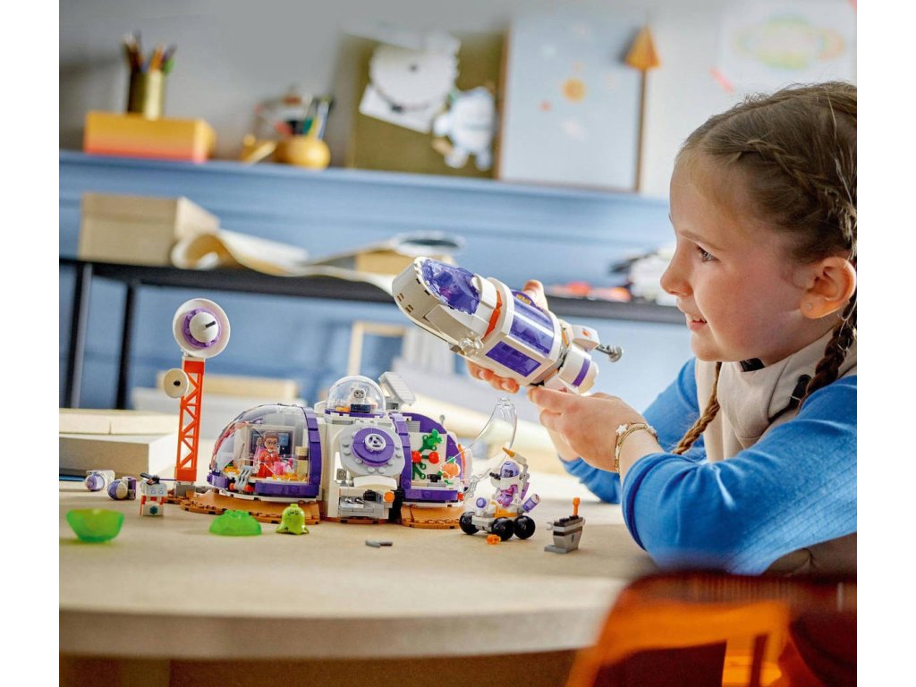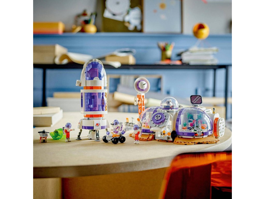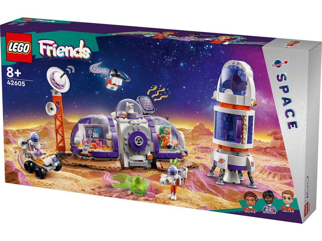 LEGO 42605 - Základna na Marsu a raketa z produktové řady LEGO FRIENDS - Dětské plastové kostky v krabici.Inspirujte malé průzkumníky k poznávání vesmíru se stavebnicí Základna na Marsu a raketa po děti od 8 let. Součástí stavebnice jsou 3 minipanenky, figurka kočky, raketa, výzkumné vozítko, modulární vědecká základna a vědecké doplňky. Tato stavebnice představuje inspirativní dárek k narozeninám pro malé vesmírné cestovatele, kteří milují vědu a techniku. Děti si postaví model rakety a dopraví postavy na výzkumnou základnu. Díky modulárnímu designu základny ji děti mohou upravovat podle své fantazie. Součástí stavebnice je modul pro vědecké bádání, komunikaci, pěstování jídla a odpočinek. Nechybí ani řada doplňků a detailů, se kterými se děti ponoří do vyprávění, včetně vozítka, dronu a vědeckých nástrojů. Součástí stavebnice je speciální vesmírný vzduchový zámek, který děti mohou propojit s dalšími kompatibilními vesmírnými stavebnicím LEGO (prodávají se samostatně) a vydat se na další dobrodružství.