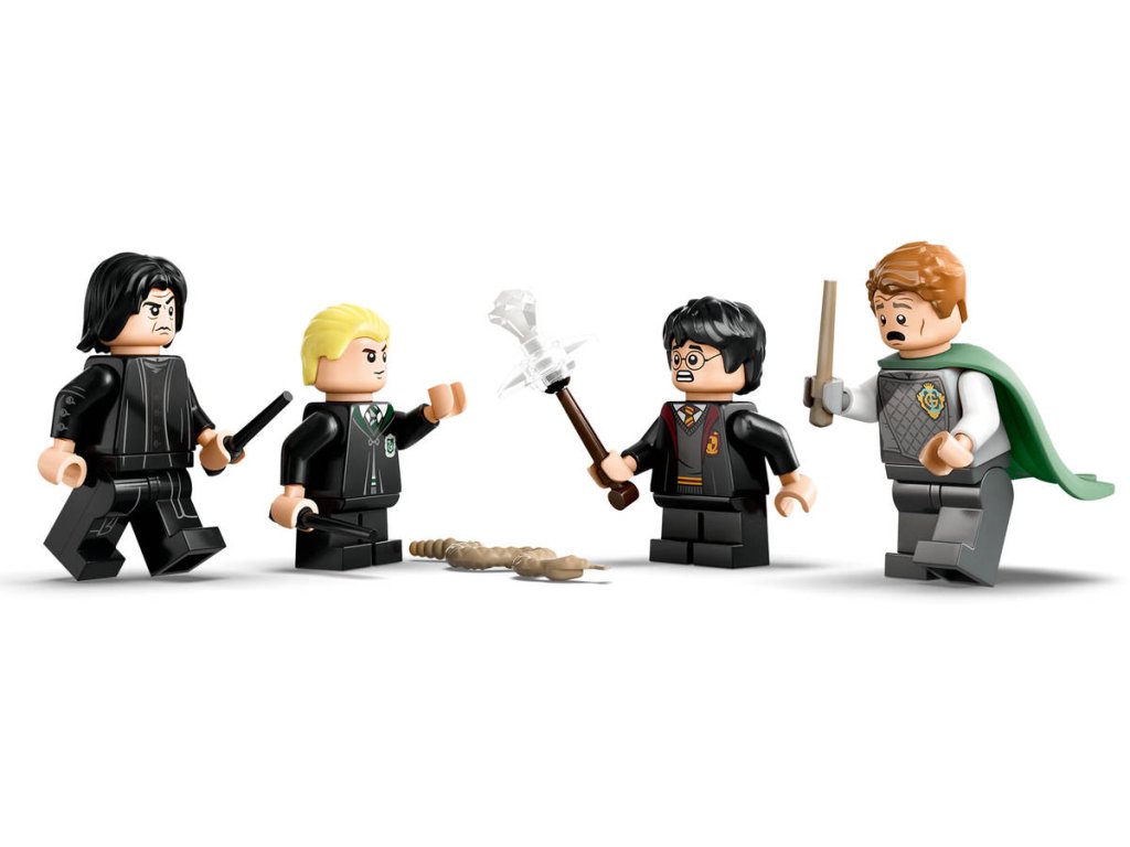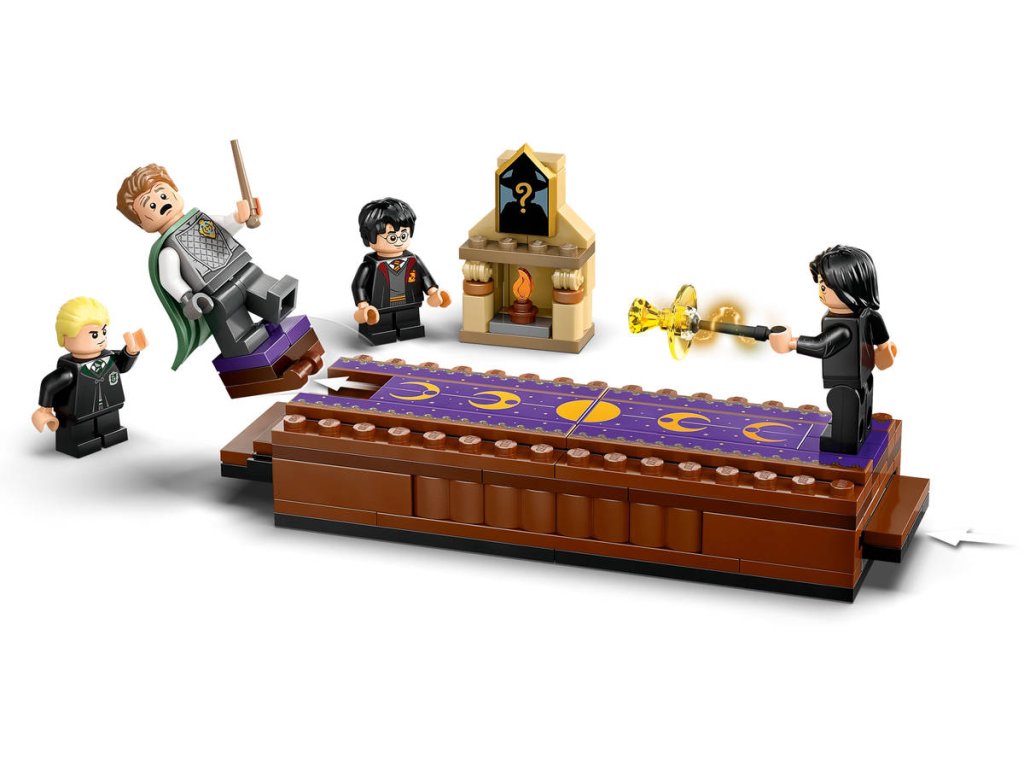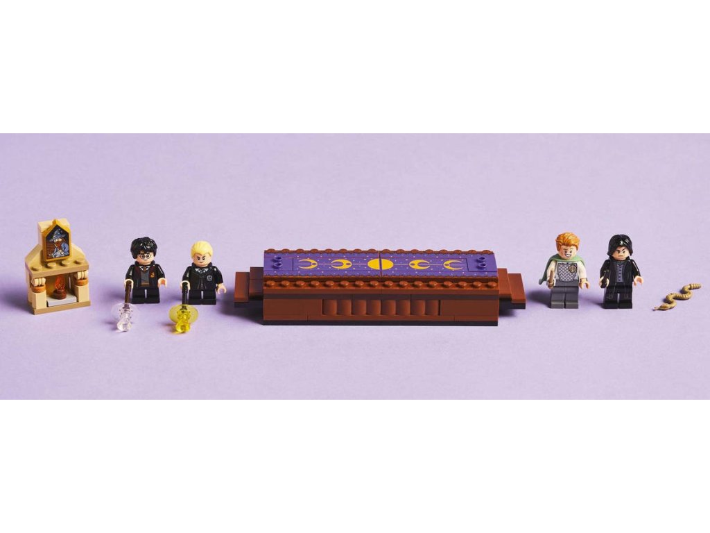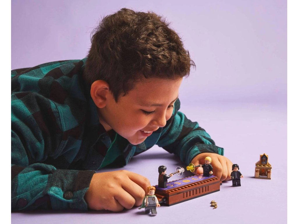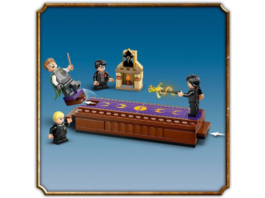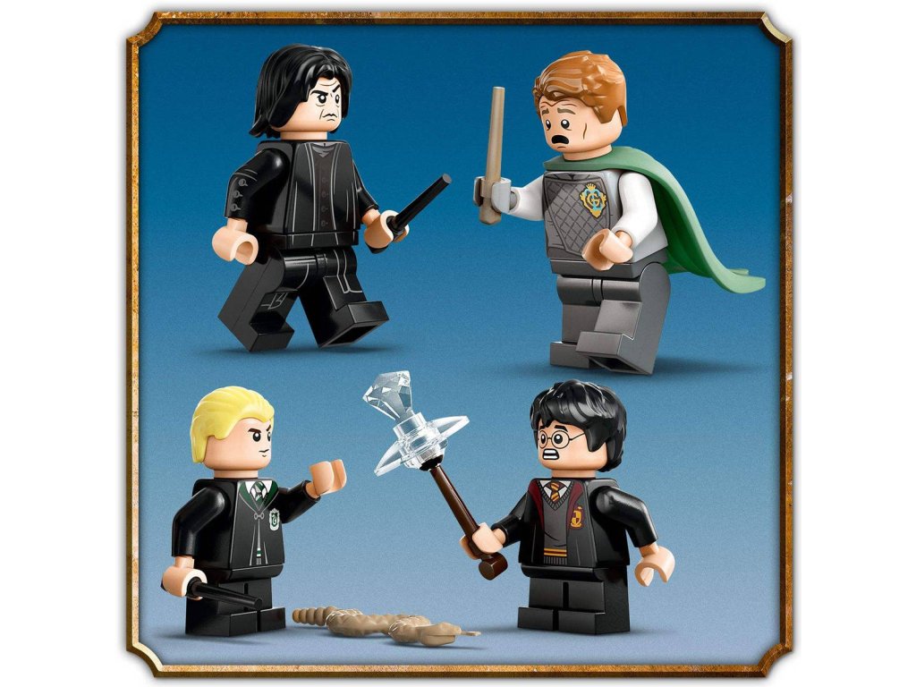 LEGO 76441 - Bradavický hrad: Soubojnický klub z produktové řady LEGO HARRY POTTER - Dětská plastová stavebnice v krabici.Připomeňte si kouzly nabitou scénu ze soubojnického klubu z filmu Harry Potter a Tajemná komnata se stavebnicí Bradavický hrad: Soubojnický klub pro děti od 8 let. Součástí je sestavitelná bojová plošina pro 2 minifigurky – zatlačením schůdků na kterékoli straně svrhnete protější minifigurku – a 1 ze 14 sběratelských bradavických portrétů, které si můžete vystavit nad sestavitelným krbem. Stavebnice obsahuje 4 oblíbené postavy: Minifigurky LEGO Harryho Pottera a Draca Malfoye, z nichž má každá hůlku a dílky představující kouzla, a minifigurky Zlatoslava Lockharta a Severuse Snapea pro kreativní hraní. Tato zábavná stavebnice s Harrym Potterem představuje skvělý způsob, jak dětem a novým fanouškům představit svět čar a kouzel z kostek LEGO. Tato dobrodružná stavebnice plná kouzel je součástí řady modulárních stavebnic LEGO Harry Potter (prodávají se samostatně), jejichž spojením vytvoříte ten největší Bradavický hrad z kostek LEGO vůbec.