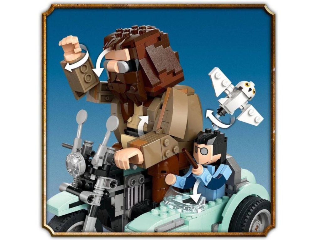 LEGO 76443 - Hagrid a Harry na motorce z produktové řady LEGO HARRY POTTER - Dětská plastová stavebnice v krabici.Pevně se držte a užijte si jízdu s Hagridem a Harrym na motorce s touto kouzelnou stavebnicí pro holky, kluky a fanoušky kouzelnického světa. Tato výstavní sada z řady LEGO Harry Potterpředstavuje skvělý narozeninový dárek pro děti od 9let a obsahuje vestavěné pohyblivé figurky Harryho Pottera, Hedviky a Rubeuse Hagrida na motorce a v sajdkáře. Kola vozidla LEGO se otáčejí, a děti si tak můžou připomenout slavné scény z filmu Harry Potter a Relikvie smrti nebo model vystavit jako poutavý výstavní kousek ze světa Harryho Pottera.