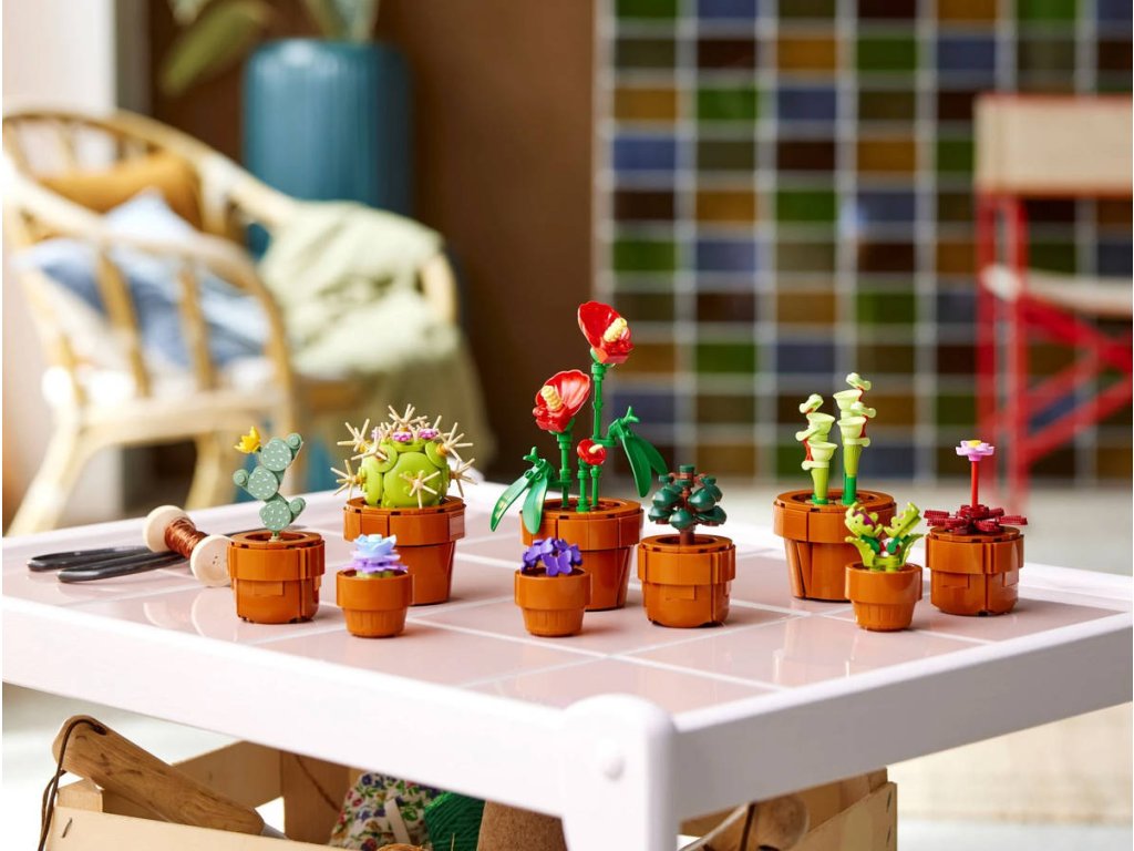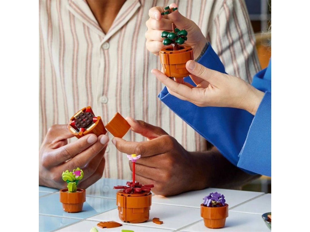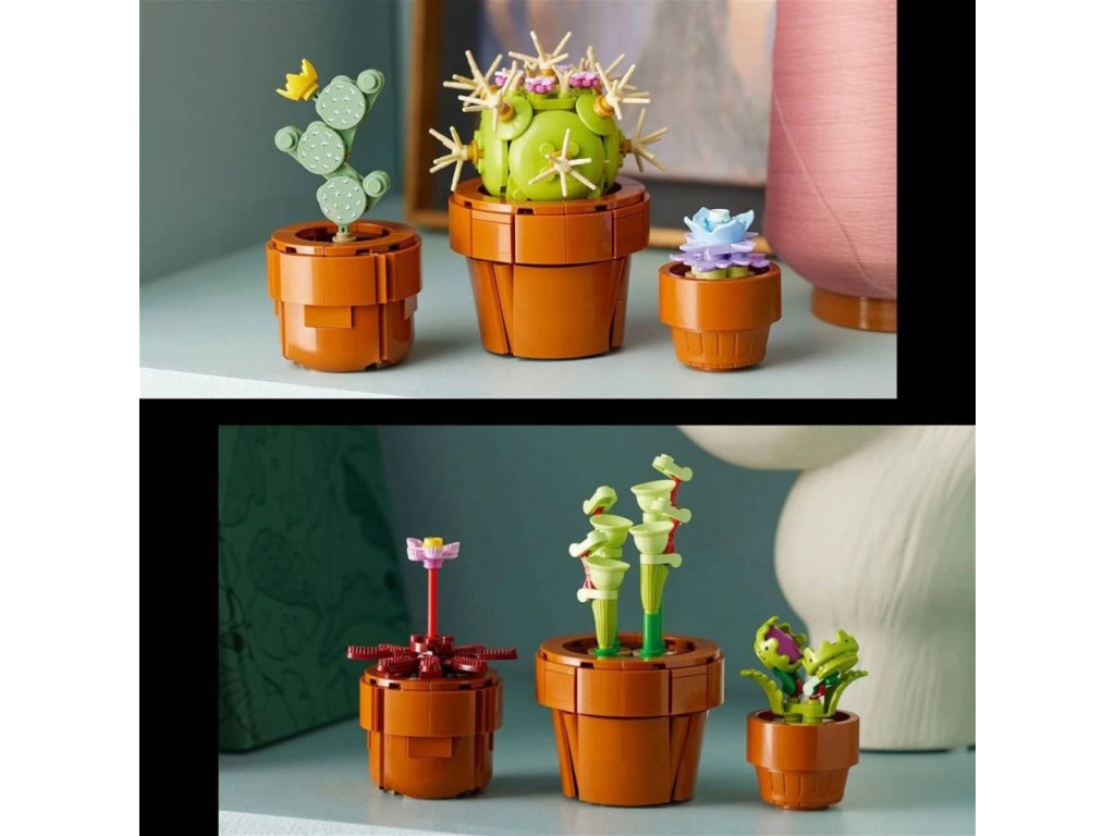 LEGO 10329: Miniaturní rostliny z produktové řady LEGO ICONS - Plastová stavebnice pro dospělé.Postavte si elegantní květinovou výstavku snadnou na údržbu. Stavebnice pro dospělé Miniaturní rostliny se skládá z modelů inspirovaných rostlinami ze suché a tropické oblasti a masožravými rostlinami. Každý z modelů má vlastní terakotový květináč z kostek. Vychutnejte si odpočinek při stavění 9 rostlin, které se skvěle hodí na vystavení doma i v kanceláři.