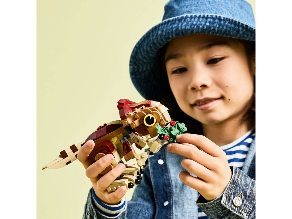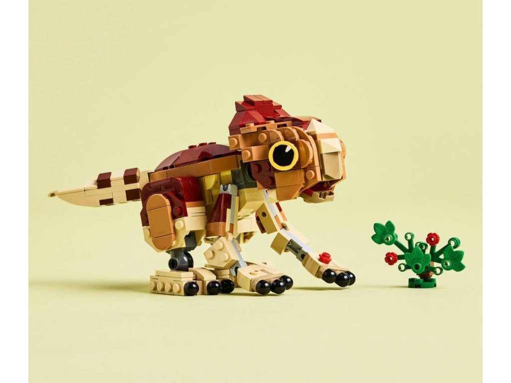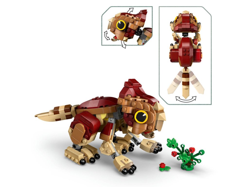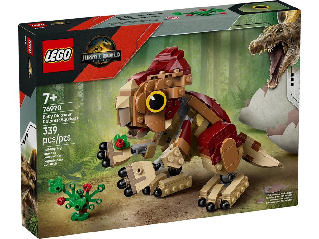 LEGO 76970 - Dinosauří mládě Dolores: Aquilops z produktové řady LEGO JURASSIC WORLD - Kvalitní dětská plastová stavebnice.Děti a fanoušci od 7 let rozšíří svou sbírku dinosaurů a vydají se na dobrodružství se zábavnou stavebnicí Dinosauří mládě Dolores: Aquilops. Tato výstavní stavebnice obsahuje figurku malého aquilopse z kostek a sestavitelnou rostlinu s květinami. Model mláděte Dolores má pohyblivou hlavu, ruce a nohy, díky kterým ji můžete libovolně napolohovat, a navíc pohyblivý ocas a otevírací čelist, kterou dává najevo potěšení, když si pochutná na rostlině. Jakmile hraní skončí, můžete si tento roztomilý model dinosaura umístit na polici nebo na stůl a pochlubit se jím.