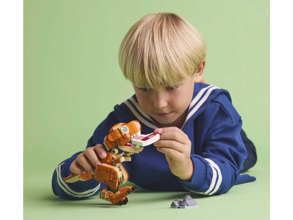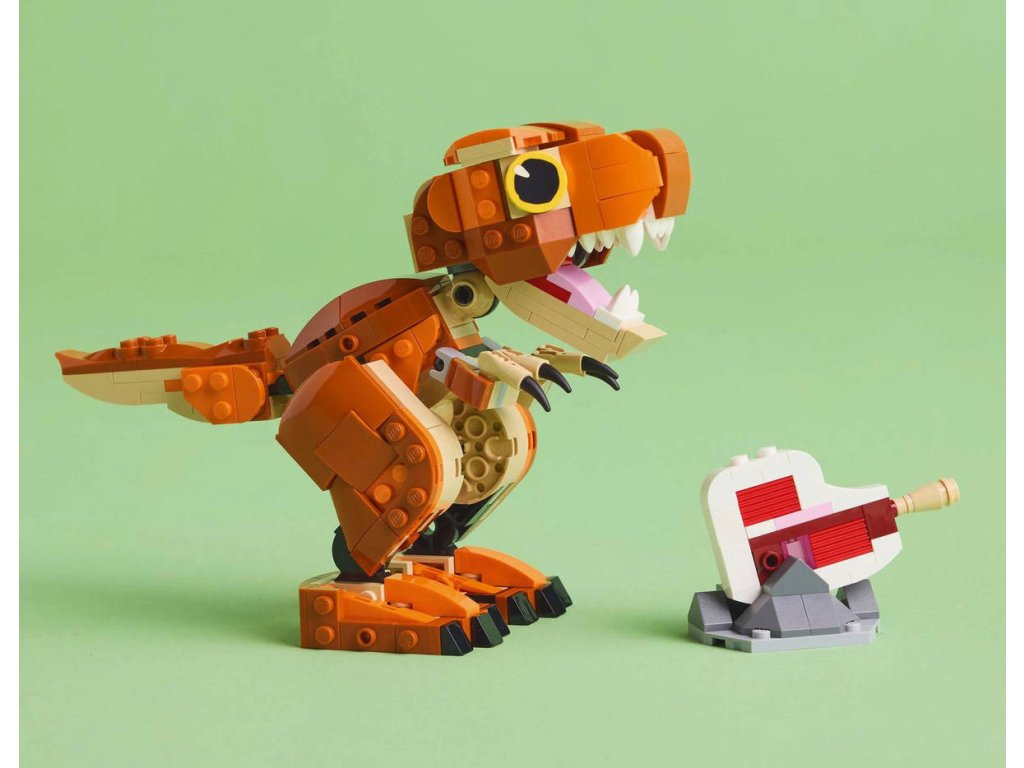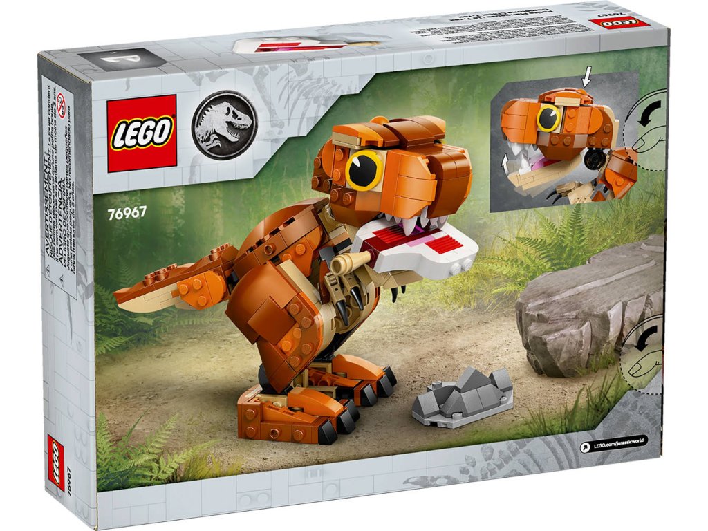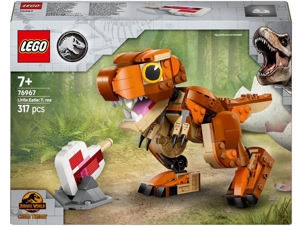 LEGO 76967 - Malá Žravka: T-rex z produktové řady LEGO JURASSIC WORLD. Dětská plastová stavebnice v krabici.Se stavebnicí Malá Žravka: T-rex si děti od 7 let užijí hodiny napínavých dobrodružství, hraní a péče o dinosaura. Stavebnice nabízí spoustu možností hraní i vystavení. Malí krotitelé dinosaurů si poskládají model LEGO dinosaura a pak se pustí do objevování pravěkého světa s Malou Žravkou ze seriálu Jurský svět: Křídový kemp. Stavebnice inspirovaná seriálem Jurský svět: Teorie chaosu obsahuje figurku T-rexe z kostek s interaktivní žvýkací čelistí a pohyblivým ocasem a končetinami, které umožňují vytvářet různé pózy. Až si děti dohrají, model dinosaura si vystaví na poličce nebo třeba na stole. Tento dárek pro děti je ideální pro kreativní hraní a lze jej kombinovat s dalšími modely LEGO Jurassic World (prodávají se samostatně). Tato stavebnice LEGO s dinosaury dětem umožní přehrávat si scény z animovaného seriálu nebo ukázat svou lásku ke světu filmů Jurassic World. Díky kompaktní velikosti je stavebnice vhodná i na hry na cestách.
