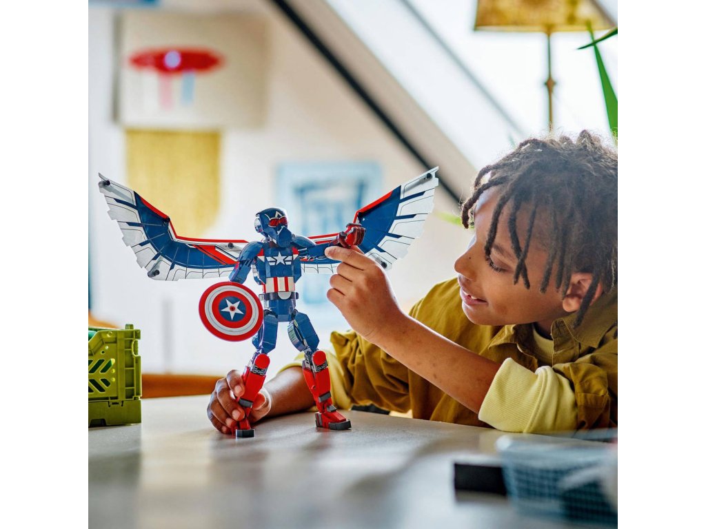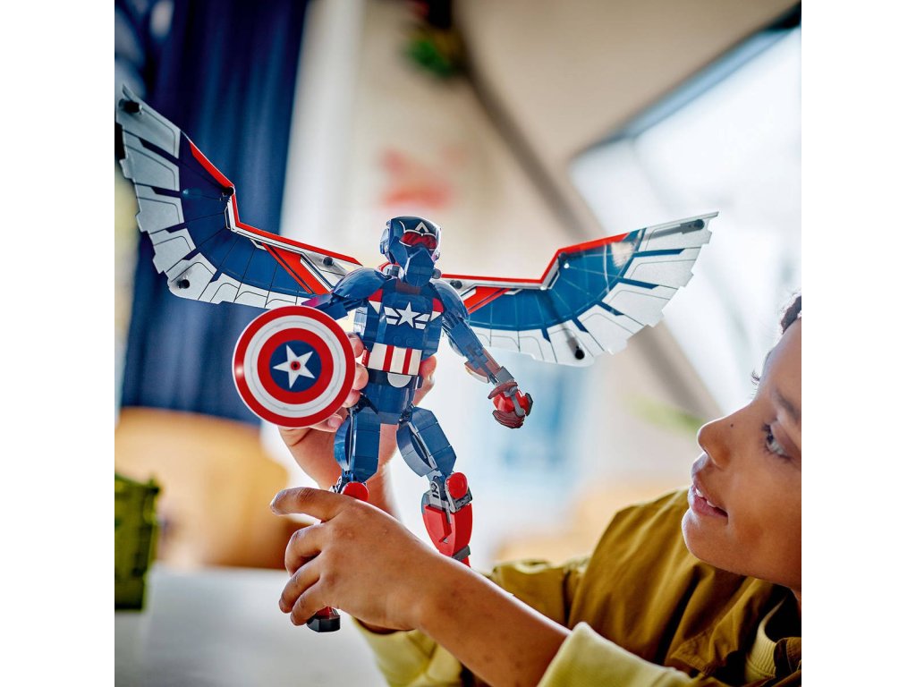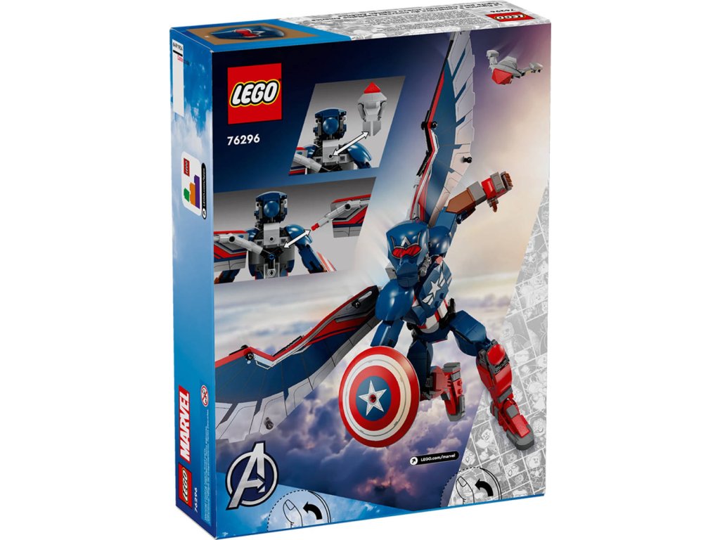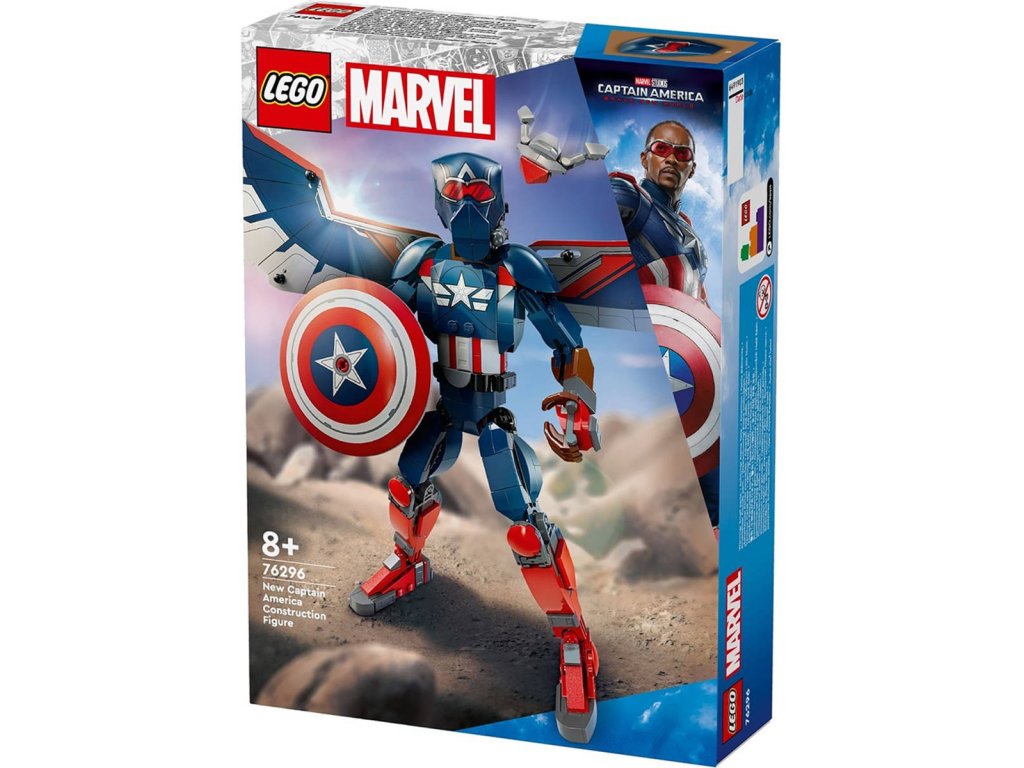 LEGO 76296 - Sestavitelná figurka nový Kapitán Amerika z produktové řady LEGO MARVEL - Kvalitní dětská plastová stavebnice.Otevřete malým superhrdinům od 8 let bránu do světa filmové akce s propracovanou, plně pohyblivou stavebnicí Sestavitelná figurka: Nový Kapitán Amerika. V této verzi supervojáka ze světa Marvel přebírá roli Kapitána Ameriky okřídlený Falcon, se kterým se děti vydají na zcela nová akční dobrodružství. Sestavitelný model superhrdiny měří přes 28 cm na výšku a má pohyblivé klouby ramen, paží, kyčlí a nohou, takže s ním děti při nápaditém hraní mohou vytvořit realistické pózy. K zádům figurky jsou připevněná velká fóliová křídla, která lze ohýbat a imitovat s nimi mávání, a navíc je můžete snadno odpojit, až se figurka vrátí na zem. Figurce Kapitána Ameriky nechybí jeho slavný štít a sestavitelný dron Redwing připevněný k zádům, který děti mohou odpojit a samostatně si s ním hrát. Pro ještě více digitální zábavy stavitelé mohou přibližovat a otáčet stavebnice ve 3D a sledovat svůj pokrok v intuitivní aplikaci LEGO Builder.