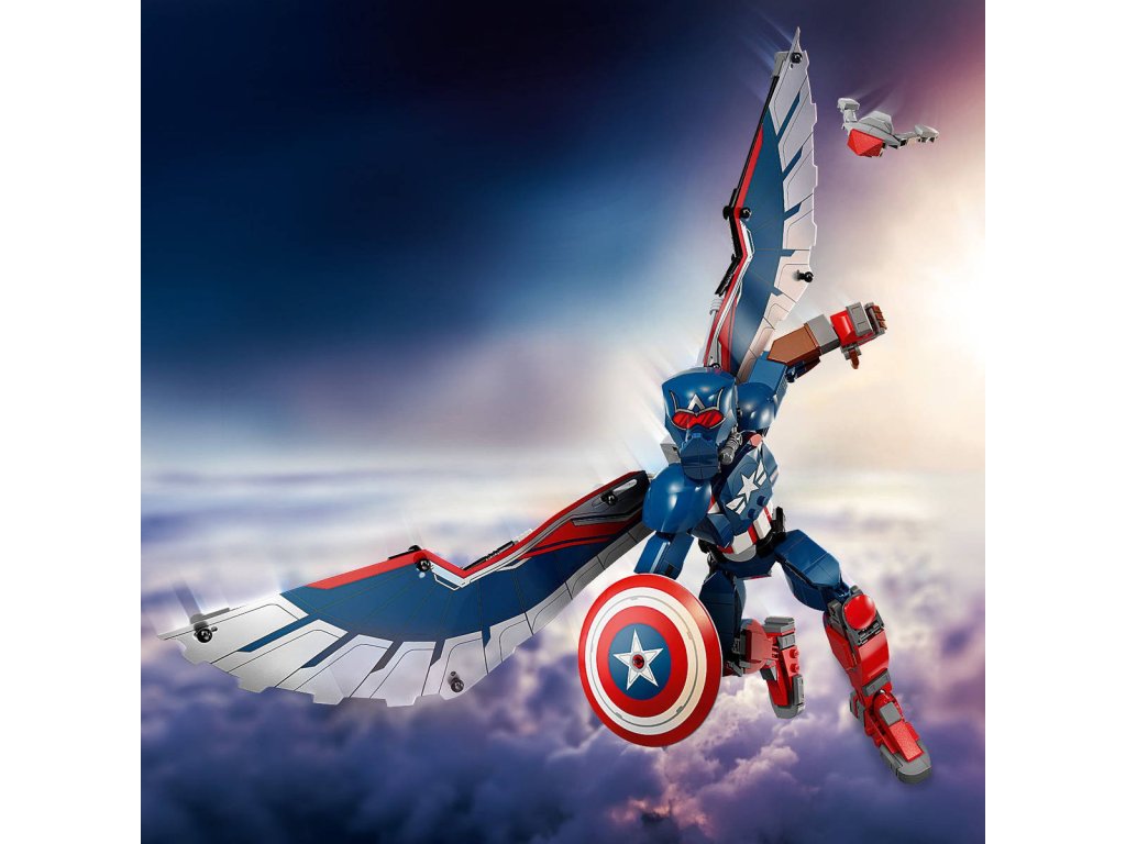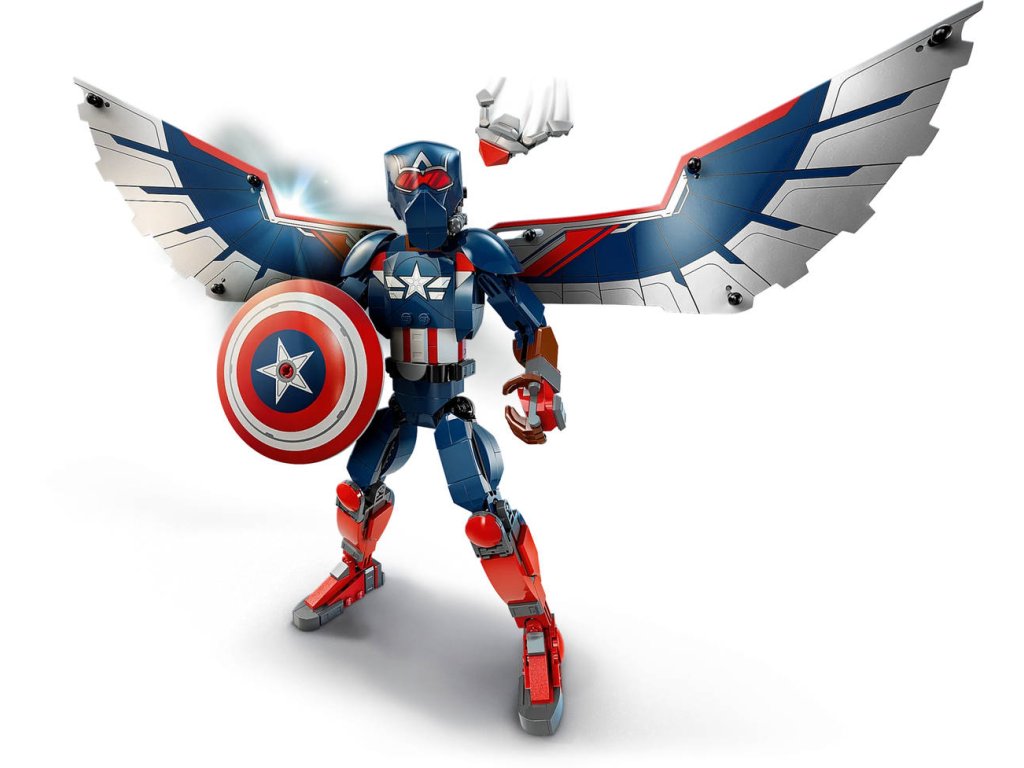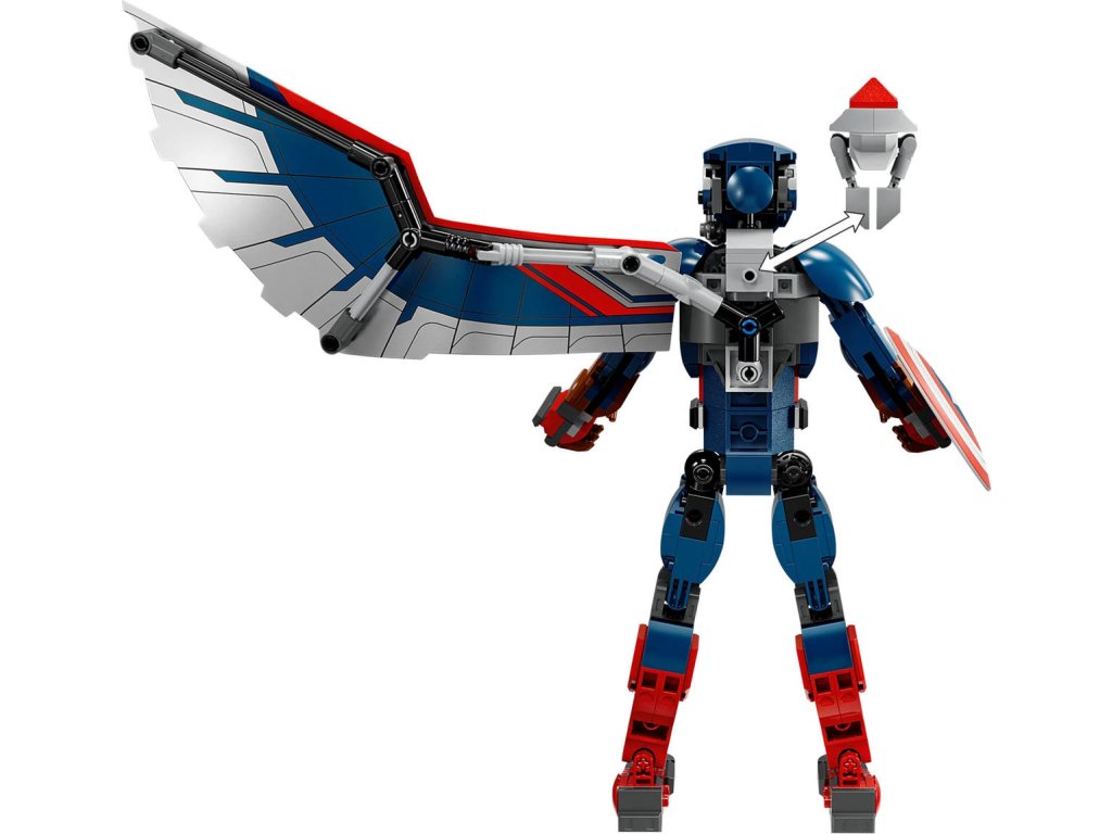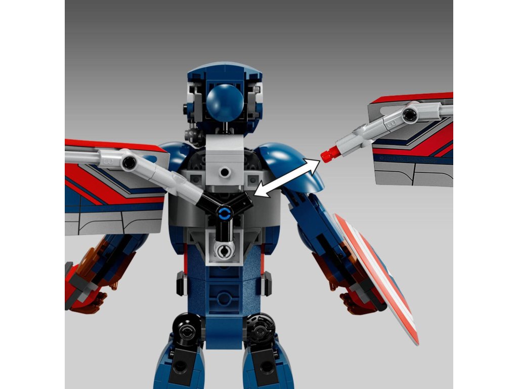 LEGO 76296 - Sestavitelná figurka nový Kapitán Amerika z produktové řady LEGO MARVEL - Kvalitní dětská plastová stavebnice.Otevřete malým superhrdinům od 8 let bránu do světa filmové akce s propracovanou, plně pohyblivou stavebnicí Sestavitelná figurka: Nový Kapitán Amerika. V této verzi supervojáka ze světa Marvel přebírá roli Kapitána Ameriky okřídlený Falcon, se kterým se děti vydají na zcela nová akční dobrodružství. Sestavitelný model superhrdiny měří přes 28 cm na výšku a má pohyblivé klouby ramen, paží, kyčlí a nohou, takže s ním děti při nápaditém hraní mohou vytvořit realistické pózy. K zádům figurky jsou připevněná velká fóliová křídla, která lze ohýbat a imitovat s nimi mávání, a navíc je můžete snadno odpojit, až se figurka vrátí na zem. Figurce Kapitána Ameriky nechybí jeho slavný štít a sestavitelný dron Redwing připevněný k zádům, který děti mohou odpojit a samostatně si s ním hrát. Pro ještě více digitální zábavy stavitelé mohou přibližovat a otáčet stavebnice ve 3D a sledovat svůj pokrok v intuitivní aplikaci LEGO Builder.