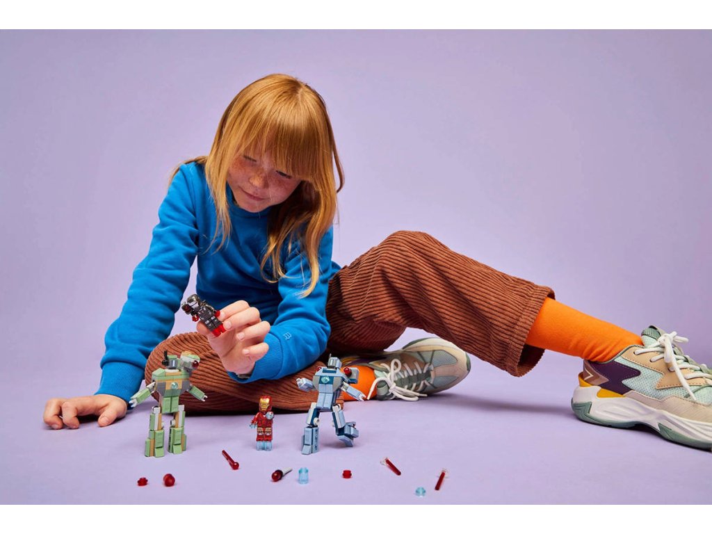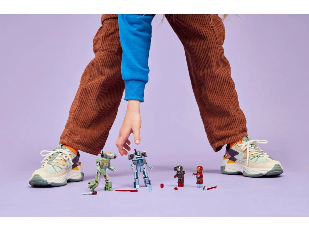 LEGO 76320 - Iron Man a War Machine vs. Hammerovy Drony z produktové řady LEGO MARVEL. Kvalitní dětská plastová stavebnice, 204 dílků v krabici.Iron Man a War Machine vs. Hammerovy Drony je sestavitelná superhrdinská stavebnice pro děti, které milují akční bitvy a sběratelské předměty LEGO Marvel. Tento malý dárek pro děti se pyšní zábavnými funkcemi a parádními zbraněmi a představuje ideální superhrdinský dárek pro kluky a holky od 7 let. Připomeňte si velkolepou bitevní scénu z filmu Iron Man 2 od studia Marvel s touto stavebnicí. Součástí jsou minifigurky Iron Mana a War Machine a 2 sestavitelné Hammerovy Drony. Drony jsou plně pohyblivé, takže je děti můžou napolohovat a užít si s nimi dynamické realistické hraní. Zelený Hammerův Dron má na rameni pružinový vystřelovač. Modrý Hammerův Dron má na obou ramenech vystřelovač aktivovaný stlačením. War Machine má červené blastery na rukou a na nohou a na rameni vystřelovač. Iron Man má modré blastery na rukou a nohou a může držet dílky v podobě laserového paprsku. Pro ještě větší digitální zábavu můžou stavitelé přibližovat a otáčet modely ve 3D a sledovat postup stavění pomocí intuitivní aplikace LEGO Builder. Stavebnice obsahuje 204 dílků.