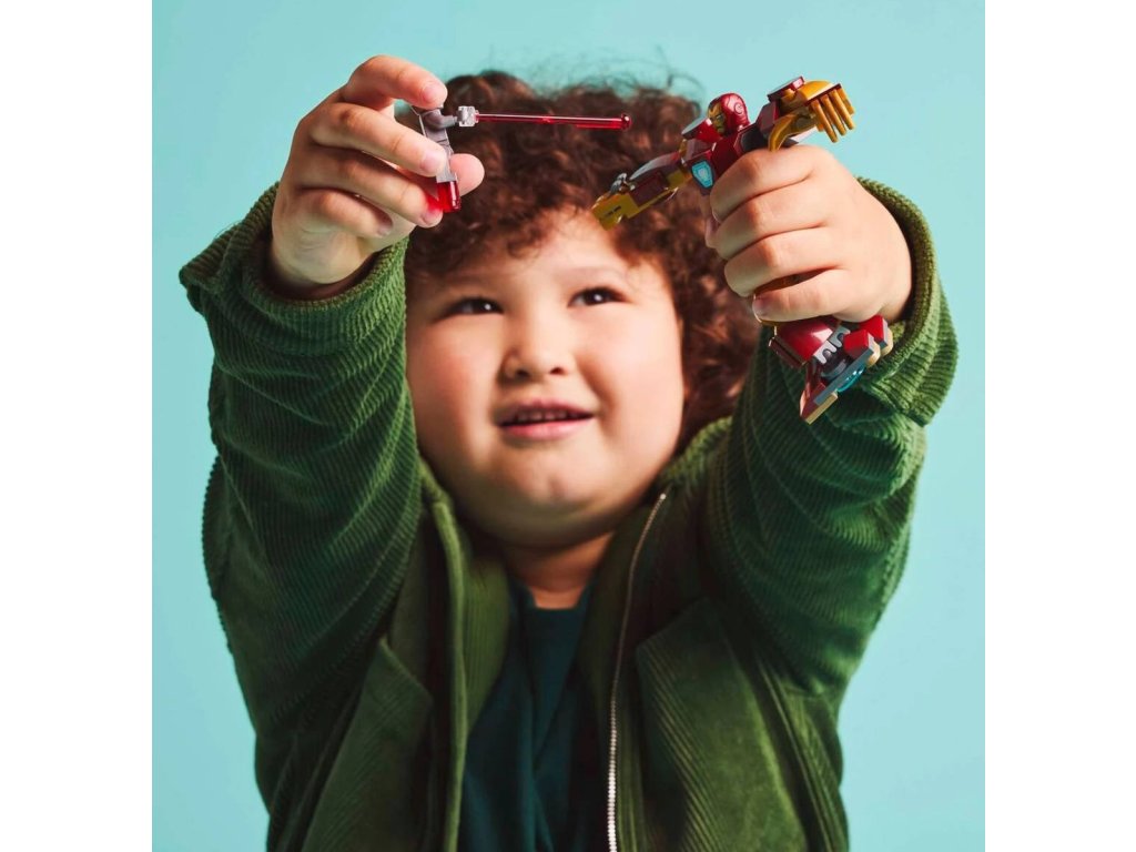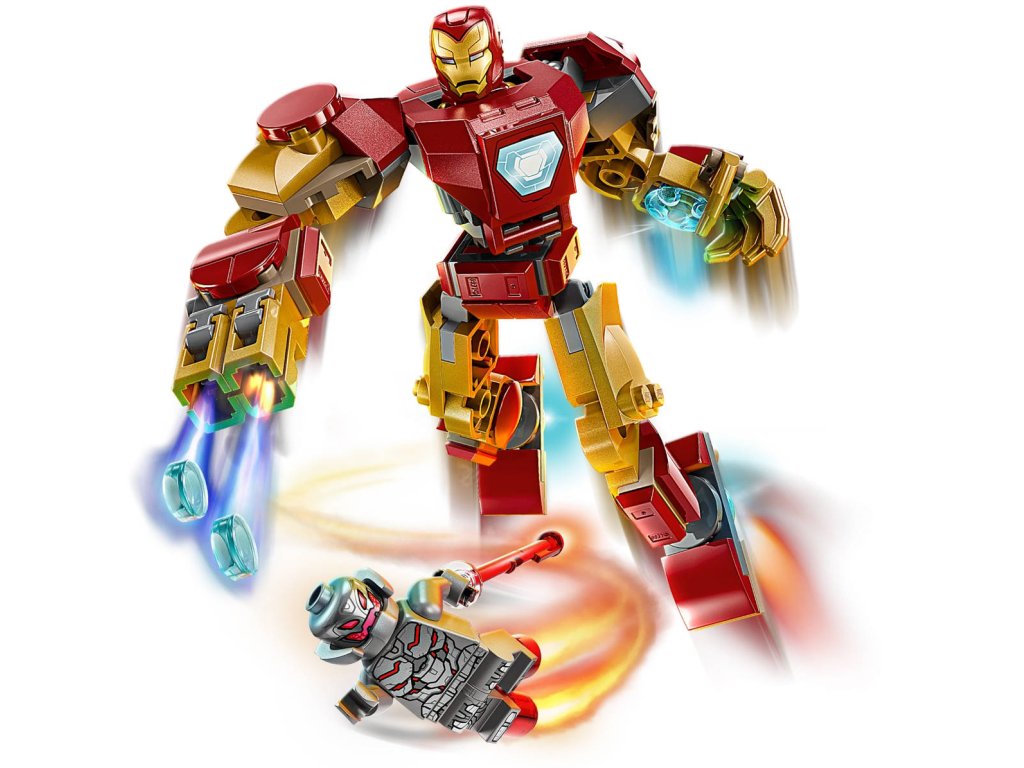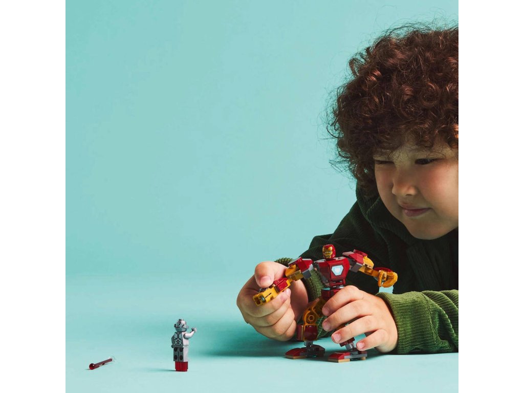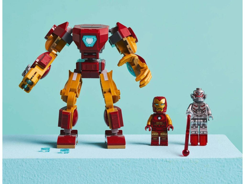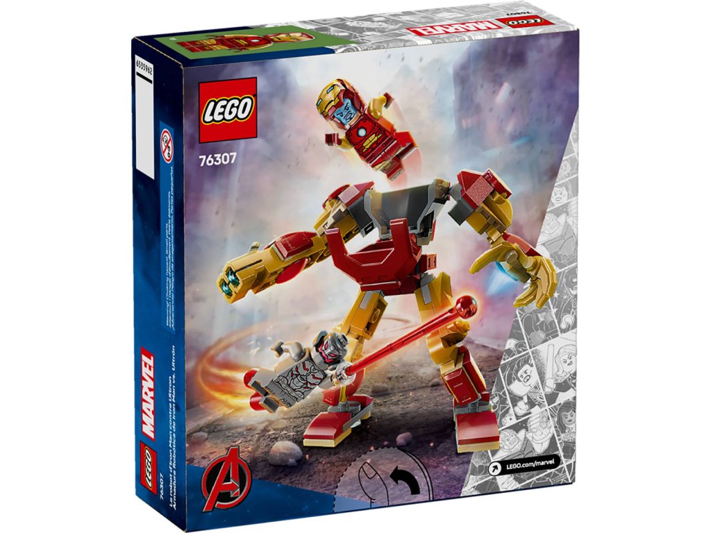 LEGO 76307 - Iron Man v robotickém obleku vs. Ultron z produktové řady LEGO MARVEL - Dětská plastová stavebnice v krabici.Iron Man v robotickém obleku vs. Ultron je akcí nabitá stavebnice z řady LEGO Marvel pro děti od 6 let, které milují superhrdiny a kreativní stavitelská dobrodružství. Tato stavebnice robotického obleku LEGO Marvel obsahuje 2 minifigurky:Iron Mana s vyklápěcí helmou a otočnou hlavou s alternativními výrazy a Ultrona s laserovým paprskem. Sestavitelný robot má pohyblivé paže, nohy a prsty a na konci pravé paže má vystřelovač. Trup lze otevřít a odhalit tak kokpit, do kterého můžete usadit minifigurku Iron Mana. Stavitelé můžou přibližovat a otáčet modely ve 3D a sledovat svůj pokrok pomocí zábavné a intuitivní aplikace LEGO Builder pro ještě větší porci digitální zábavy.