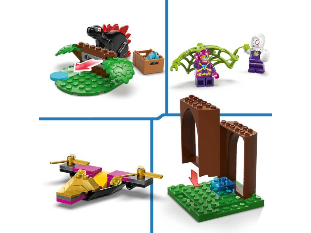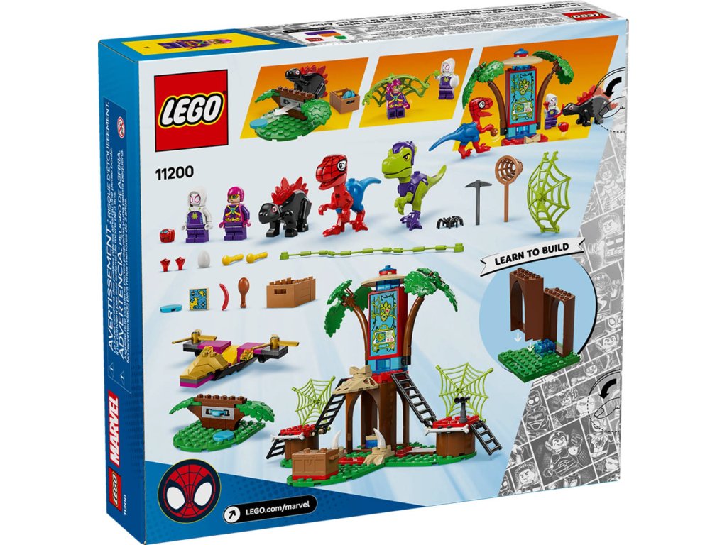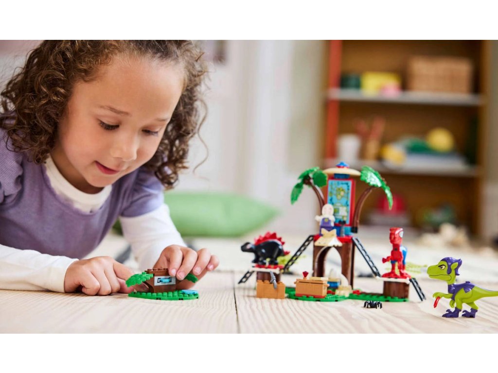 LEGO 11200 - Spidey, Gobby a raptoří bitva na základně na stromě z produktové řady LEGO MARVEL - Dětská plastová stavebnice v krabici.Děti od 4 let, které milují superhrdiny, dinosaury a sestavitelné hračky, si zamilují dobrodružnou stavebnici Spidey a jeho úžasní přátelé Spidey, Gobby a raptoří bitva na základně na stromě. Domek na stromě má 3 plošiny, včetně jedné s velkou obrazovkou zobrazující misi týmu. Nechybí minifigurky Trapster, Ghost-Spider a Trace-E a sestavitelné figurky dinosaurů Spidey-Rexe, Gobby-Raptora a Dino-Spina. Trapsteřino letadlo má 2 vystřelovače. Mezi doplňky najdete velké pavučiny, červené diamanty, truhlu s pokladem, mapu k pokladu, klobásu, vejce, kuřecí stehno, dalekohled a sekeru. Součástí je také barevný obrázkový návod na stavění, který přináší intuitivní pokyny. Jednotlivé sáčky obsahují kostky a velkou začátečnickou kostku, díky kterým se děti můžou hned pustit do stavění. Stavebnice LEGO pro děti od 4 let představují skvělý způsob, jak dospělí můžou sdílet zábavu při stavění se svými potomky.