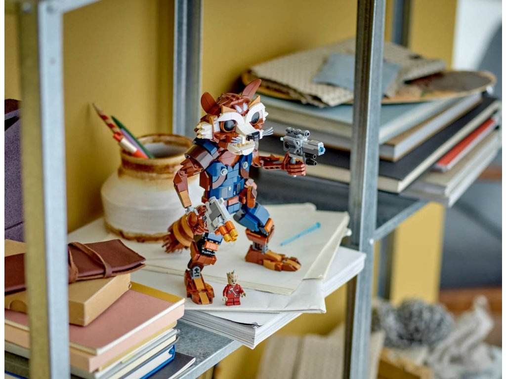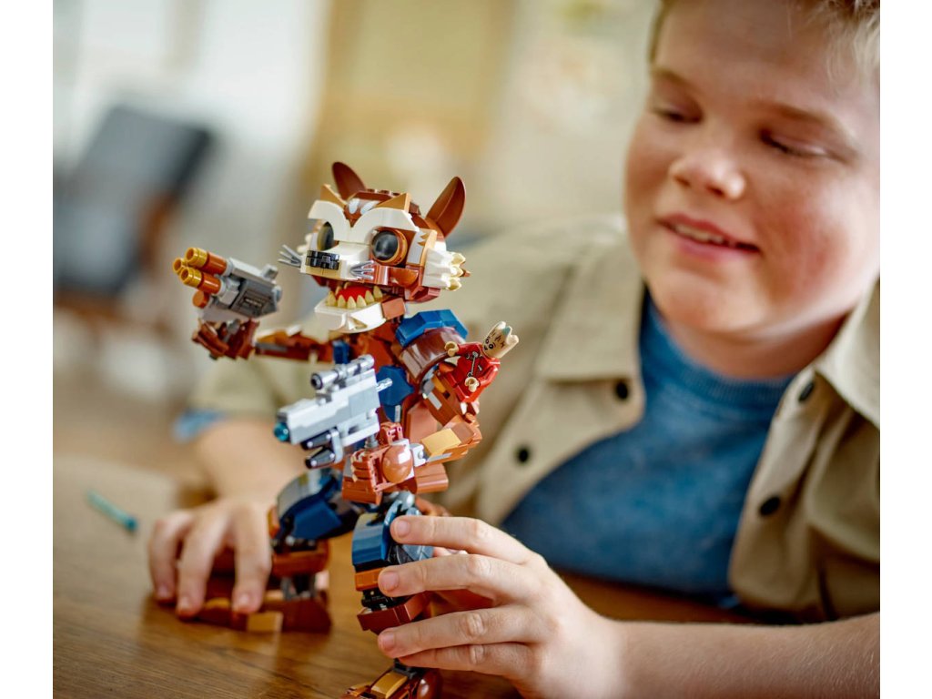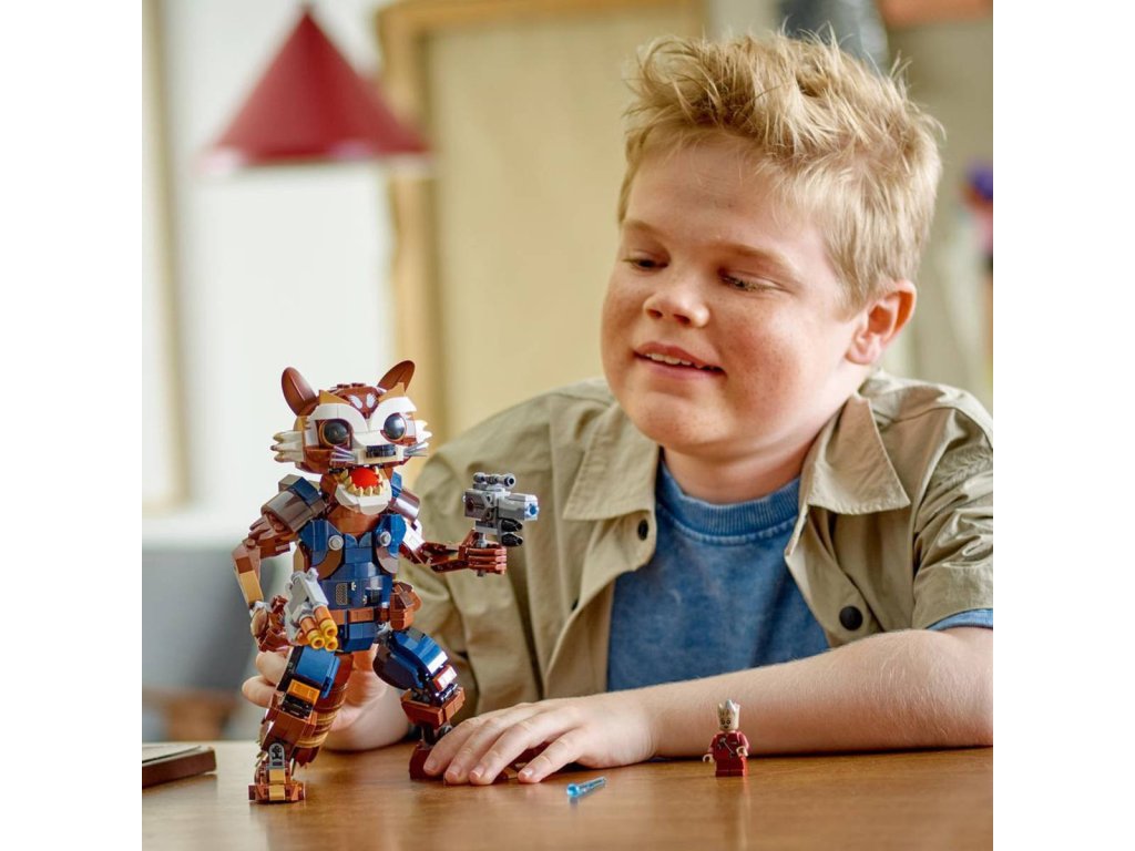 LEGO 76282: Rocket a baby Groot z produktové řady LEGO MARVEL - Dětské plastové kostky v krabici.Stavebnice Rocket a malý Groot posune zážitek z marvelovských akčních scén na novou úroveň. Stavebnice je vhodná pro děti od 10 let a po sestavení měří přes 22cm na výšku. Tato akční figurka Rocketa je mnohem víc než jen dětská hračka – jedná se o realistické zpracování oblíbené postavy z filmu Strážci Galaxie od studia Marvel. ento sestavitelný pohyblivý model hrdiny dokonale zachycuje jeho rebelskou duši a lásku ke zbraním. Kromě loktů jsou všechny jeho klouby plně pohyblivé a přinášejí nekonečné možnosti hraní i vystavování. V rukou drží pružinový vystřelovač a blaster. Na rameni sedí jeho roztomilý společník, malý Groot. Pokud hledáte moderní stavebnici pro malé superhrdiny, LEGO Marvel Rocket a malý Groot představuje skvělou volbu. Pro ještě více digitální zábavy je zde zábavná a intuitivní aplikace LEGO Builder, kde mohou stavitelé přibližovat a otáčet modely ve 3D a sledovat postup.