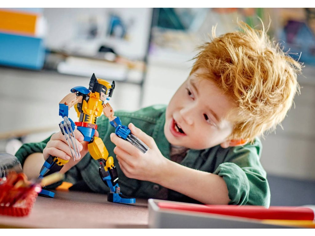 Sběratelská postava z příběhů o X-Menech je skvělou stavebnicí pro malé fanoušky studia Marvel a přinese jim radost ze stavění, hraní i vystavování. Figurka má pohyblivé klouby ramen, paží, kyčlí a nohou a děti ji tak mohou libovolně polohovat a vydávat se s ní na strhující mise. Detailní figurce nechybí Wolverinovy 3 slavné prodloužené drápy na obou rukách a děti si tak mohou užívat marvelovská dobrodružství kdekoli. Malí stavitelé mohou přibližovat a otáčet modely ve 3D a sledovat pokrok pomocí zábavné a intuitivní aplikace LEGO Builder.