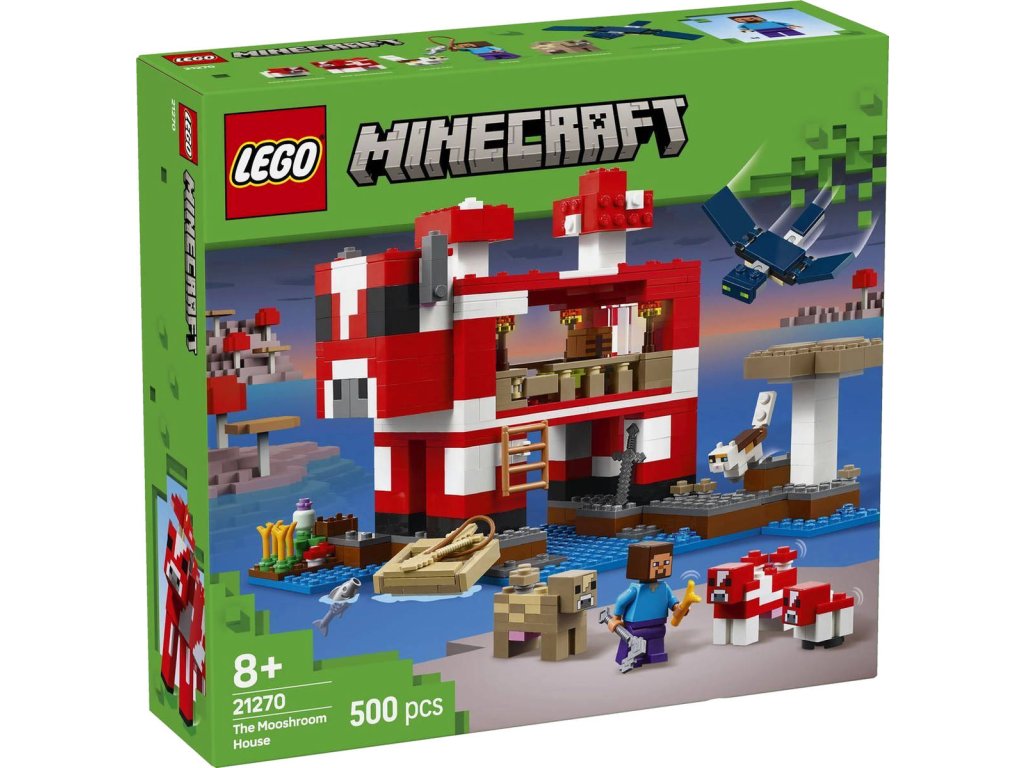 LEGO 21270 - Krávomůrčí domek z produktové řady LEGO MINECRAFT - Dětská plastová stavebnice v krabici.Stavebnice LEGO Minecraft Krávomůrčí domek zaručeně potěší hráče Minecraftu a malé milovníky stavění domů, péče o zvířata a odrážení občasných útoků ze vzduchu! Tato poutavá stavebnice představuje skvělý dárek ze světa Minecraft pro holky a kluky od 8 let. Tato stavebnice LEGO Minecraft se nachází na houbovém ostrově a obsahuje oblíbenou postavu Steva, červenou krávomůrku, malou červenou krávomůrku, hnědou krávomůrku, tříbarevnou kočku a nepřátelský létající přízrak. Stavebnice je plná prvky, které se objevují ve hře, včetně malé farmy s pšenicí, houbami a rostliny rostoucí vedle kompostéru. Mezi doplňky najdete rybářský prut, tresku, motyku, netheritový meč, misku, loďku s vesly, truhlu, pec, pracovní stůl, knihovnu, chléb a postel. S aplikací LEGO Builder si děti užijí ještě větší porci zábavy. Umožní jim na jejich zařízení přibližovat a otáčet modely ve 3D.