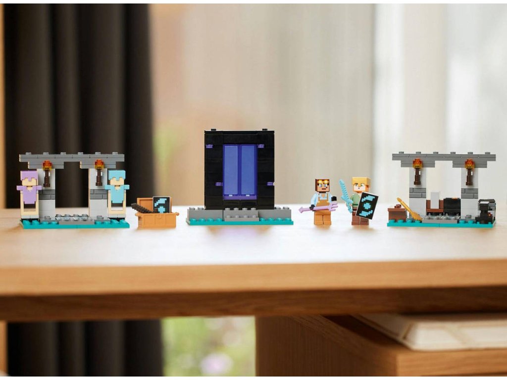LEGO 21252 - Zbrojnice z produktové řady LEGO MINECRAFT - Dětské plastové kostky v krabici.Milovníci hry Minecraft od 7 let si oblíbí akční stavebnici Zbrojnice. Představuje skvělý dárek pro děti a je ideálním úvodem do kreativního světa dobrodružných stavebnic LEGO Minecraft. Součástí této stavebnice na motivy videohry Minecraft jsou 2 oblíbené postavy: akční hrdinka Alex se štítem a diamantovým mečem a pracovitý kovář brnění. Sada se skládá ze 3 částí: Z kovárny s kovadlinou, pecí, brusným kamenem a kotlíkem s lávou, ze zbrojnice s truhlou se zlatou sekerou, začarovaným trojzubcem, netheritovým mečem, štítem a dalšími prvky ze světa Minecraft a z portálu do Netheru s dveřmi, které malé stavitele dovedou k dalšímu dobrodružství. Děti mohou tuto dobrodružnou stavebnici propojit s dalšími sadami z řady LEGO Minecraft, například Přepadení v portálu do Netheru, která se prodává samostatně, a užít si ještě větší porci zábavy.