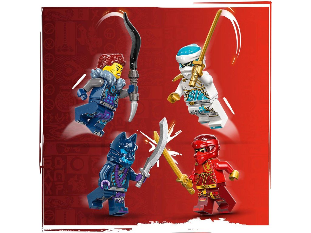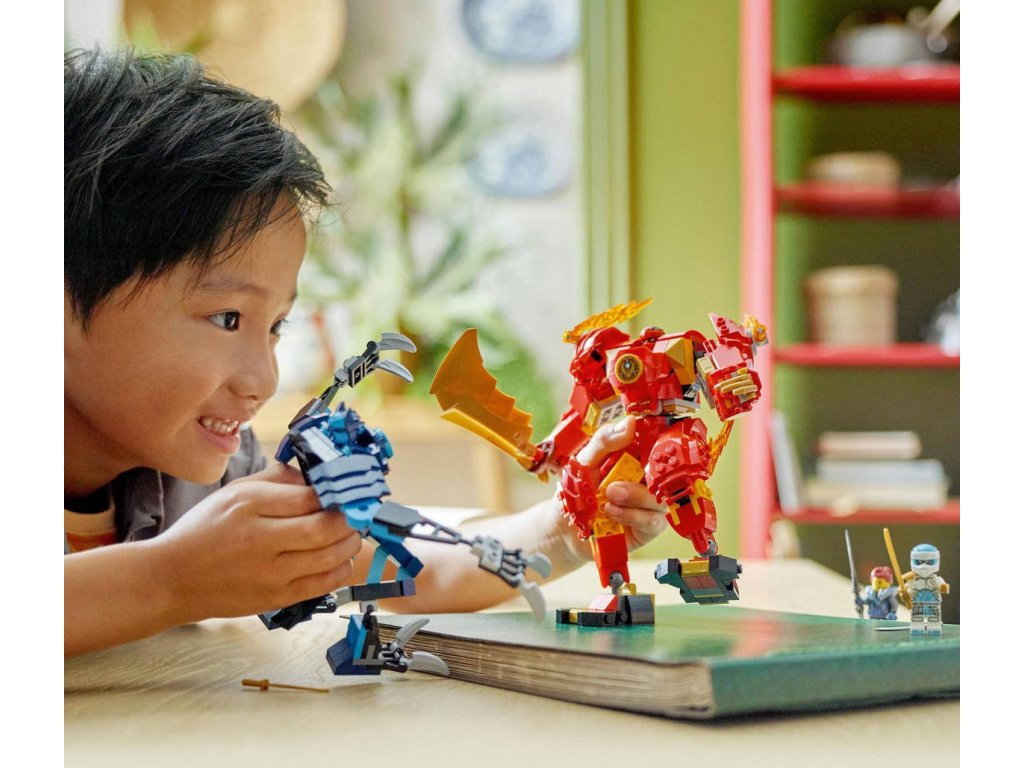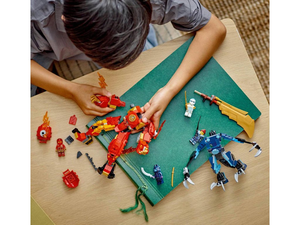 Součástí stavebnice s červeným robotem jsou 4 minifigurky – Kai a Zane s katanami, Jordana s mečem a válečník s vlčí maskou – s kterými děti čekají akční nindžovské příběhy. Stavebnici lze postavit s pomocí aplikace LEGO Builder, která vás a vaše dítě provede snadným a intuitivním stavitelským dobrodružstvím.