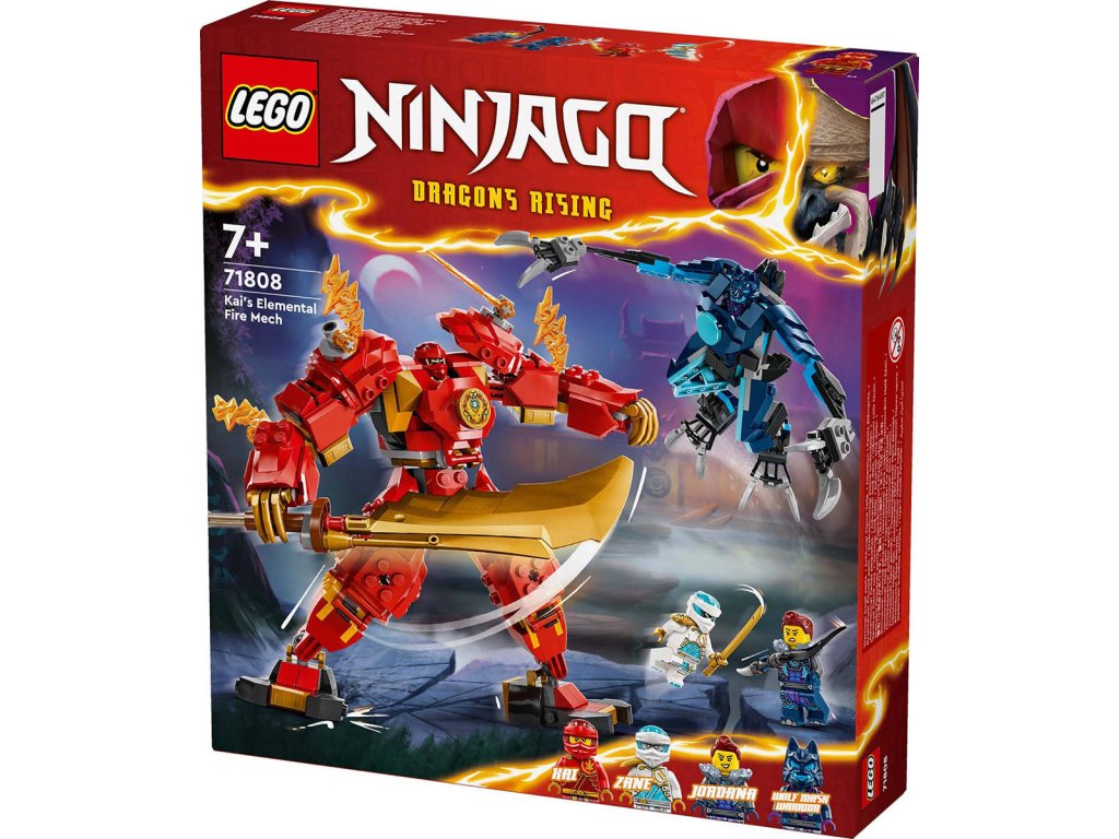 LEGO 71808: Kaiův živelný ohnivý robot z produktové řady LEGO NINJAGO - Dětské plastové kostky v krabici.Děti od 7 let si se stavebnicí Kaiův živelný ohnivý robot připomenou své oblíbené scény z 2. řady televizního seriálu NINJAGO Dračí povstání. Robot má pohyblivé končetiny, které lze naklánět a otáčet do dramatických bojových póz, kokpit pro minifigurku nindži a velký zlatý meč, který se bude hodit v bitvách proti robotovi vlčího klanu.