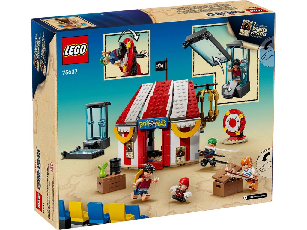 LEGO 75637 - Klaun Buggy a jeho cirkusový stan z produktové řady LEGO ONE PIECE - Kvalitní dětská plastová stavebnice v krabici.Děti se se stavebnicí Klaun Buggy a jeho cirkusový stan vydají na cirkusové dobrodružství jako ze seriálu ONE PIECE. Tato anime stavebnice LEGO pro kluky a holky od 8 let obsahuje spoustu doplňků, se kterými si děti přehrají oblíbené scény ze světa ONE PIECE a inspirují je k vymýšlení vlastních nápaditých dobrodružství. Součástí stavebnice jsou minifigurky Luffyho, Zora, Nami a pirátského kapitána Klauna Buggyho. Sestavitelný stan lze otočit a vytvořit tak větší hrací plochu s odnímatelnými částmi s židlemi a Buggyho trůnem. Součástí jsou také 3 cirkusové pasti, ze kterých musí hrdinové uniknout: nádrž na vodu, otáčející se terč a závěsná klec. Uvnitř stanu najdete krabice a sudy s dílky, ze kterých lze postavit menší verzi Buggyho. Nechybí spousta skvělých zbraní a doplňků, včetně 2 plakátů hledaných osob. Pro ještě větší porci digitální zábavy můžou stavitelé přibližovat a otáčet modely ve 3D a sledovat postup stavění pomocí intuitivní aplikace LEGO Builder. Stavebnice obsahuje 573 dílků.