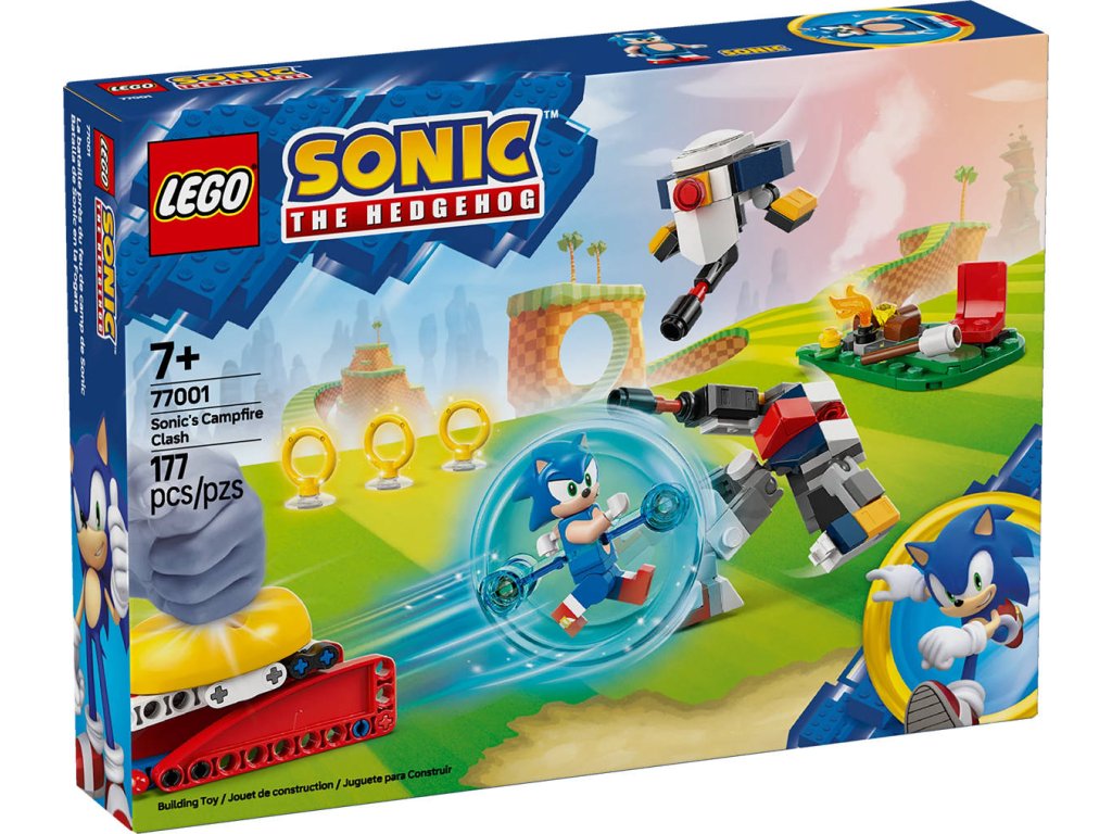LEGO 77001 - Ježek Sonic: Souboj u táboráku z produktové řady LEGO SONIC THE HEDGEHOG - Kvalitní dětská plastová stavebnice v krabici.Milovníci videoher od 7 let se se sběratelskou stavebnicí Sonic a souboj u táboráku můžou těšit na zábavná dobrodružství. Tato stavebnice LEGO s postavou Sonic the Hedgehog obsahuje model táboráku, vystřelovač koulí rychlosti, kouli rychlosti a doplňky včetně Chaos Emerald a 3 zlatých prstenů. Tato videoherní stavebnice obsahuje také 4 postavy ze světa Sonica: Minifigurku Sonica, „létající“ robotický dron G.U.N. Beetle, pohyblivou figurku robota G.U.N. Huntera a Tockyho. Tato interaktivní, funkcemi nabitá stavebnice Sonic pro kluky a holky děti a fanoušky inspiruje k vyprávění nových příběhů se Sonicem a nepřátelskými roboty. Vychutnají si okamžiky odpočinku u táboráku, postaví se robotům při záchraně Tockyho a získají 3 zlaté prsteny.