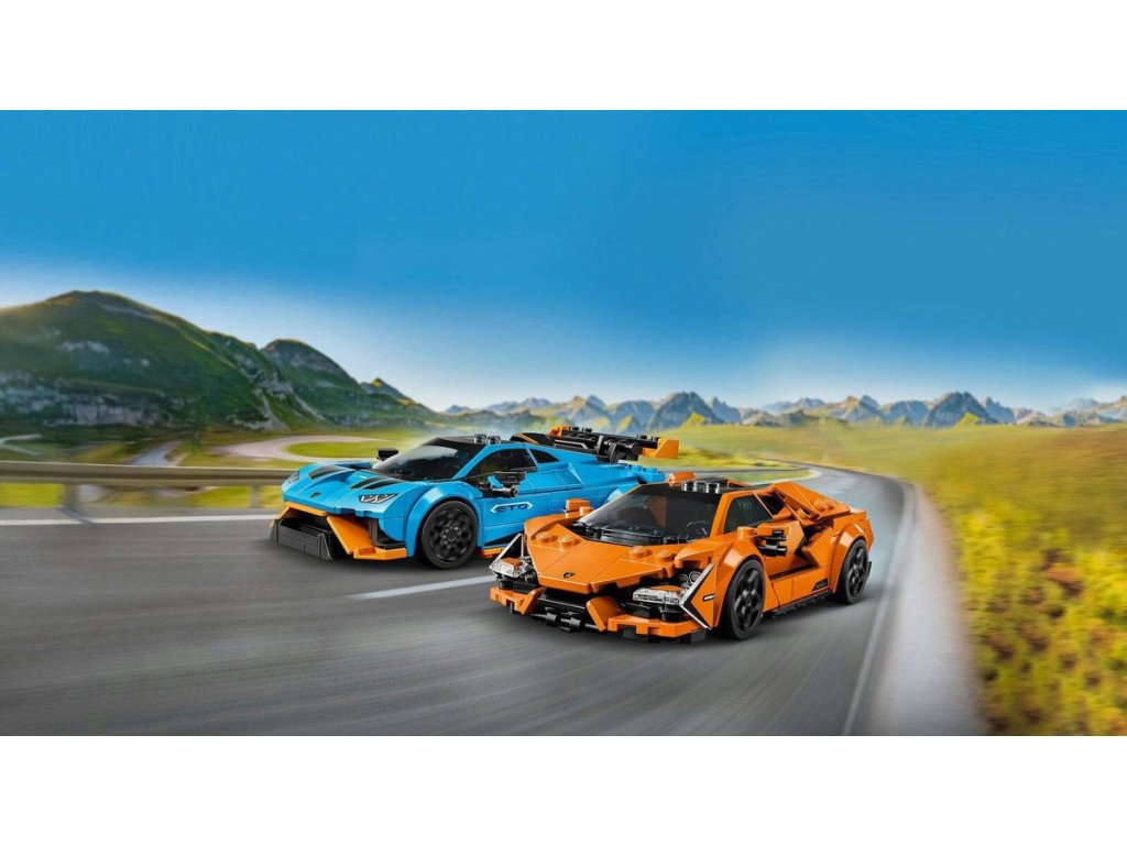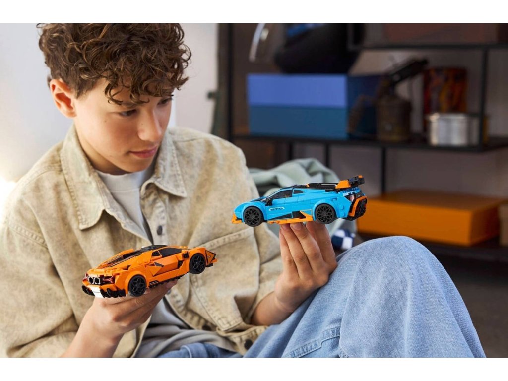 LEGO 77238 - Auto Lamborghini Revuelto a Huracán z produktové řady LEGO SPEED CHAMPIONS. Kvalitní dětská plastová stavebnice, 607 dílků v krabici.Děti prozkoumají jedinečný styl, konstrukci a design značky Lamborghini s dvojitým balením autíček Lamborghini Revuelto a Huracán STO. Tato stavebnice se 2 závodními auty LEGO, která se skvěle hodí na stavění, vystavování i vyprávění příběhů, představuje skvělý dárek pro kluky a holky od 10 let i dospělé sběratele. Revuelto s motorem V12 je vůbec nejvýkonnějším modelem této italské automobilky a Huracán STO je ideální na cesty i na tratě. Oba modely aut se pyšní autentickými detaily skutečných aut Lamborghini, včetně sání, křídel, futuristických světlometů a zadních světel ve tvaru Y. Součástí každého autíčka je minifigurka řidiče, kterou děti posadí za volant a vydají se s ní na závody.
