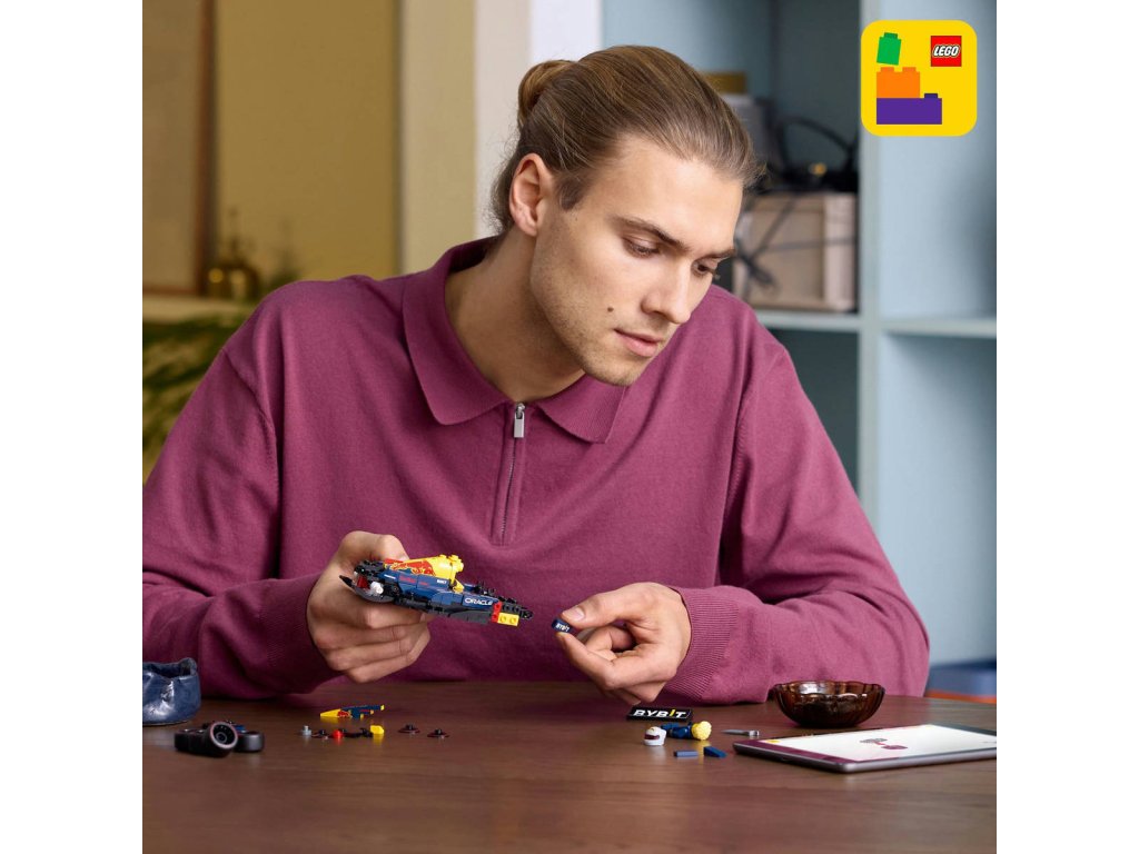 LEGO 77243 - Závodní auto Oracle Red Bull Racing RB20 F1 z produktové řady LEGO SPEED CHAMPIONS. Kvalitní plastová stavebnice pro dospělé.Oslavte svou lásku k závodům Formule 1 s se závodním modelem LEGO Speed Champions Závodní auto Oracle Red Bull Racing RB20 F1. Toto auto pro dospělé má designové detaily navržené podle skutečné verze, která soutěžila v Mistrovství světa Formule 1 v roce 2024. Obdivujte úžasné detaily modelu vozu F1 s kokpitem, který lze otevřít zvednutím svatozáře, zadním křídlem, rovnoběžníkovou nápravou, polepy sponzorů a širšími zadními pneumatikami s nápisem „Pirelli“. Součástí závodního auta F1 je také minifigurka jezdce v outfitu Red Bull s okřídlenou helmou, kterou můžete umístit do kokpitu. Po sestavení se model F1 bude skvěle vyjímat na výstavce.