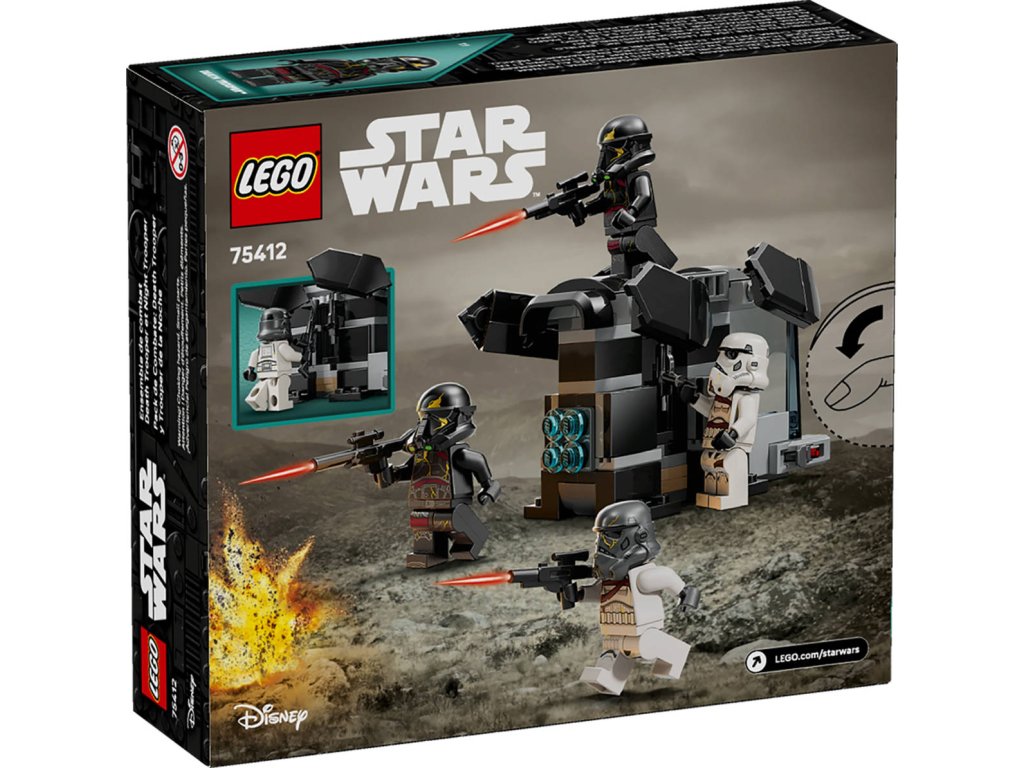 LEGO 75412 - Bitevní balíček: Death Trooper a Night Trooper z produktové řady LEGO STAR WARS (Hvězdné války) - Kvalitní dětská plastová stavebnice v krabici.Děti si postaví vlastní četu a vydají se s ní do bitev ze seriálu LEGO Star Wars: Ahsoka s Bitevním balíčkem: Death Trooper a Night Trooper. Stavebnice představuje parádní malý dárek pro kluky, holky a fanoušky od 6 let, který obsahuje výsadkovou loď s prostorem pro 4 minifigurky LEGO na zadní straně, 2 vystřelovači a kokpitem s odnímatelným krytem pro minifigurku LEGO. Součástí jsou 4 minifigurky LEGO Star Wars – 2 Death Troopeři a 2 Night Troopeři. Každý z nich má blaster, který můžete umístit vedle nich v zadní části výsadkové lodi. Připravte se na zábavné bitvy! Nenechte si ujít další Bitevní balíčky LEGO Star Wars (prodávají se samostatně) a objevte další minifigurky, vozidla a doplňky LEGO, se kterými si děti užijí ještě více možností fantastického hraní. Stavebnice obsahuje 119 dílků.