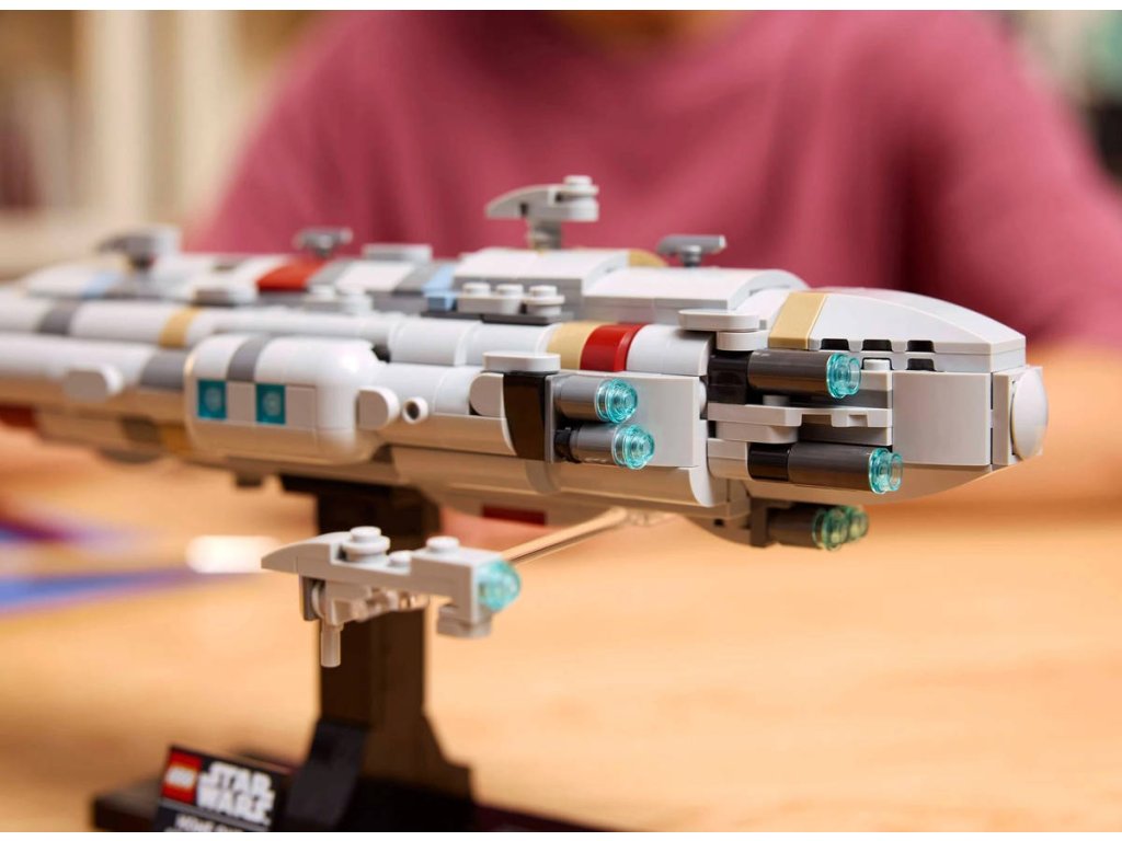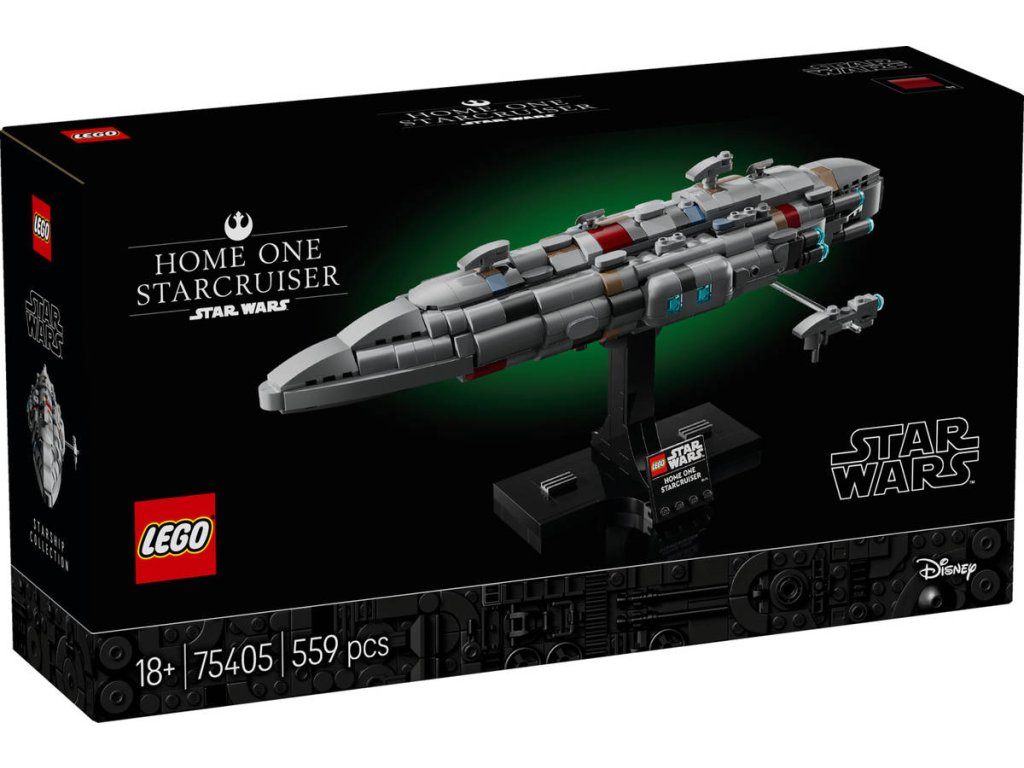 LEGO 75405 - Hvězdný křižník Home One z produktové řady LEGO STAR WARS - Plastová stavebnice pro dospělé.Užijte si chvilky nostalgie z filmu Star Wars: Návrat Jediů s vůbec prvním modelem LEGO Star Wars Hvězdného křižníku Home One z kostek pod velením admirála Ackbara v bitvě o Endor. Zábavná stavebnice vesmírné lodi Star Wars představuje krásný dárek pro dospělé a nabízí komplexní a obohacující kreativní zážitek. Postavte si autentické detaily vlajkové lodi flotily Povstalecké aliance a vystavte si model na sestavitelném stojanu s cedulkou. Boční část lze oddělit a prohlédnout si detaily interiéru. Stavebnice obsahuje také malou lékařskou fregatu Nebulon-B postavenou z kostek, která může „letět“ vedle křižníku Home One. Tato sběratelská výstavní stavebnice pozici je součástí sbírky vesmírných lodí LEGO Star Wars střední velikosti a poslouží jako působivá výzdoba domova každého fanouška Star Wars.