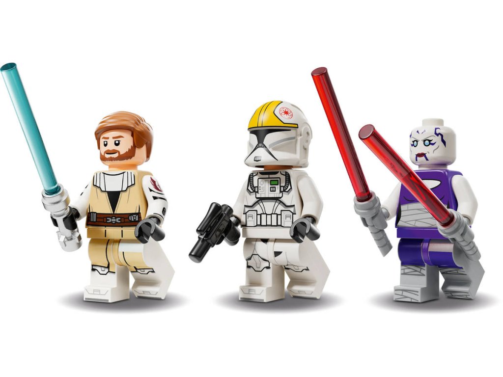 LEGO 75432 - Stíhačka V-19 Torrent Starfighter z produktové řady LEGO STAR WARS - Kvalitní dětská plastová stavebnice v krabici.Spojte síly s hrdinným generálem Obi-Wanem Kenobim a společně se postavte Asajj Ventress s akční stavebnicí LEGO Star Wars: Klonové války Stíhačka V-19 Torrent Starfighter. Model stíhačky představuje úžasný dárek Star Wars pro kluky, holky a fanoušky od 9 let a je vybaven 2 vystřelovači a nastavitelnými křídly pro režim letu a přistání. Střední křídlo lze také použít jako rukojeť na „létání“. Stavebnice stíhačky obsahuje 3 minifigurky LEGO Star Wars, včetně Asajj Ventress se 2 červenými světelnými meči se speciálními zahnutými jílci a generála Obi-Wana Kenobiho s modrým světelným mečem pro akční souboje.