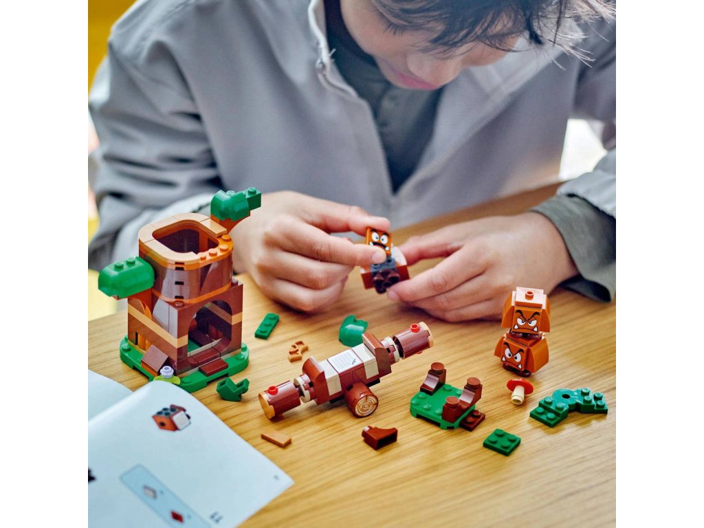 LEGO 71433 - Goombové na hřišti z produktové řady LEGO SUPER MARIO - Kvalitní dětská plastová stavebnice v krabici.Užijte si zábavu s tímto parádním a dobrodružným setem pro děti Goombové na hřišti. Tento sběratelský kousek Nintendo, který je skvělým dárkem pro kluky, holky a všechny fanoušky Super Maria od 7 let, obsahuje 3 figurkyGoomby, a k tomu navíc sestavitelný kmen stromu a houpačku pro kreativní hraní. Stisknutím páčky na zadní straně sestavitelného kmene stromu na vás vyskočí Goomba. Pohoupejte Goomby na houpačce nebo naskládejte všechny 3 Goomby na sebe a postavte Goombověž. Přidejte k tomuto setu figurku LEGO Maria, LEGO Luigiho nebo LEGO Peach (ze setů 71439, 71440 nebo 71441 – prodávají se samostatně) a užijte si interaktivní výzvu v balancování na houpačce.