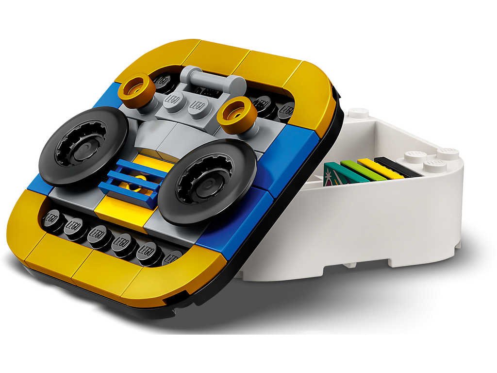 Děti si mohou BeatBox ozdobit pomocí LEGO dílků. Podle předlohy si můžou vytvořit designy s kazeťákem, sprejem nebo klíčem - nebo si vymyslet vlastní. Do BeatBoxu se pohodlně vejdou BeatBity i