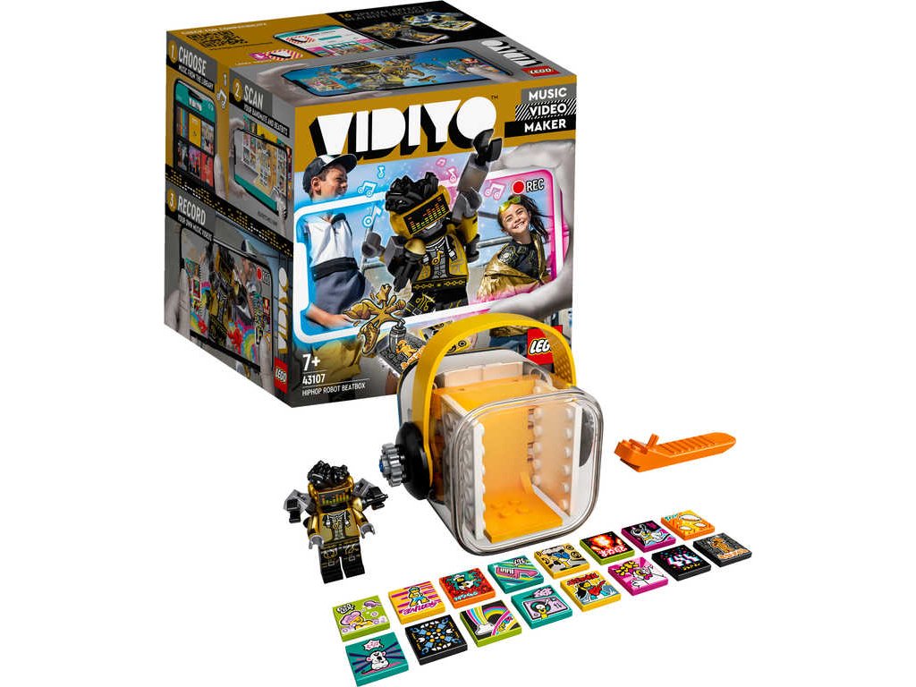 LEGO 43107 - HipHop robot BeatBox z produktové řady LEGO VIDIYO. Dětské plastové kostky v krabici.Vstupte do světa videoklipů a hudebních hvězd. Sada LEGO VIDIYO HipHop Robot BeatBox přináší vzrušující herní zážitky. Stáhněte si aplikaci, naskenujte minifigurku robota a předveďte na pódiu