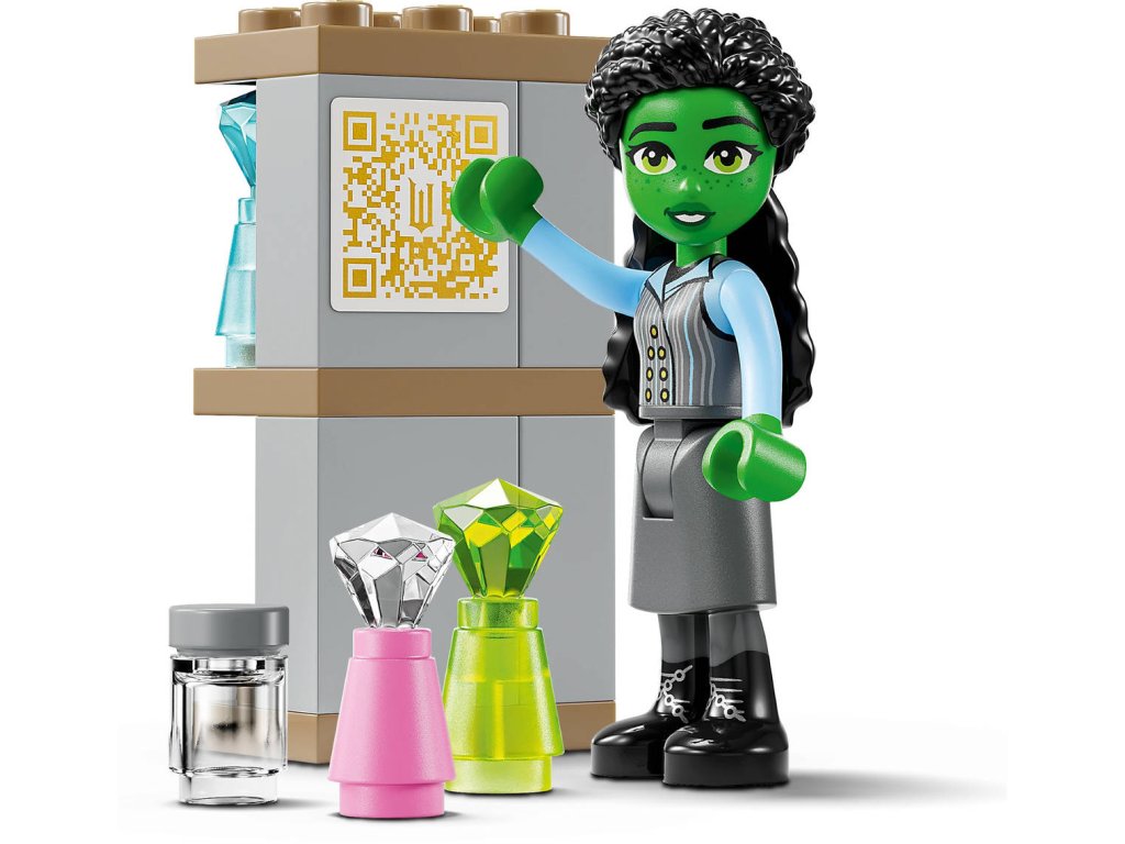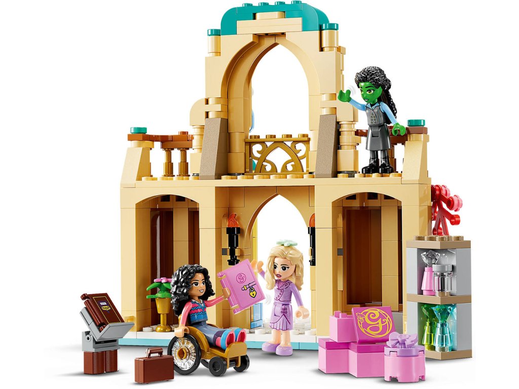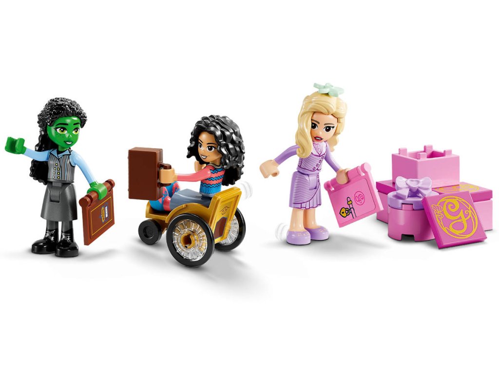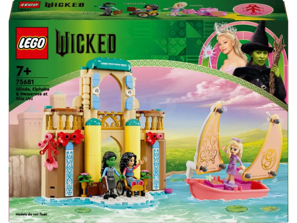 LEGO 75681 - Wicked (Čarodějka): Glinda, Elphaba a Nessarose na Shiz univerzitě. Kvalitní dětská plastová stavebnice v krabici.Vydejte se s dětmi od 7 let do země Oz s fantasy stavebnicí Glinda, Elphaba a Nessarose na Shiz univerzitě. Představuje skvělý dárek pro děti, které milují domečky pro panenky, a fanoušky filmu Wicked (Čarodějka). Fanoušci se vydají na dobrodružství ve světě LEGO Wicked. Glinda připluje na Shiz univerzitu na své plachetnici se sklopnou plachtou. Pyšní se krásným růžovým odstínem, stejně jako ve filmu. Stavebnice představuje skvělý dárek a je inspirovaná filmem Wicked (Čarodějka) a děti si s ní připomenou příběhy o přátelství minipanenek Glindy, Elphaby a Nessarose. Propracovaná dvoupatrová budova obsahuje 2 balkony a místnost na knihy se stojanem na knihy. Děti objeví QR kód a naskenují ho svým zařízením, aby odemkly jedinečný online obsah LEGO Wicked. Stavebnice s miniaturním domečkem pro panenky je plná kreativních doplňků, jako jsou květiny, lektvary a samolepka na Nessarosinin invalidní vozíček a malí milovníci domečků pro panenky si stavebnici přizpůsobí podle svých představ.