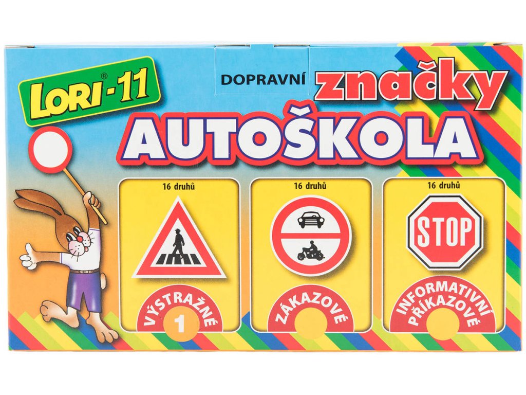 LORI 011 Autoškola set autíčko + dopravní značky 16ks s kužely 2ks 3 druhy 11