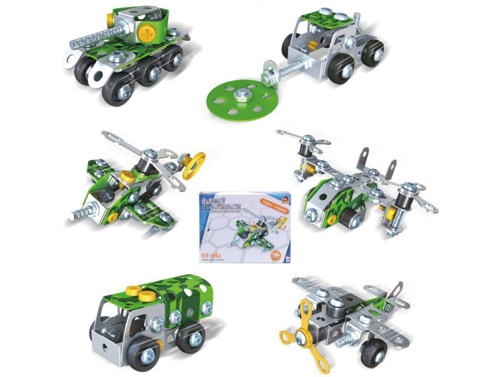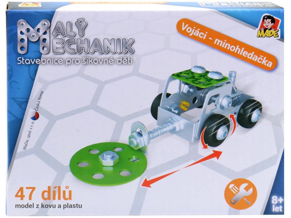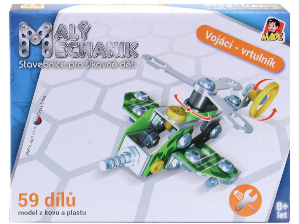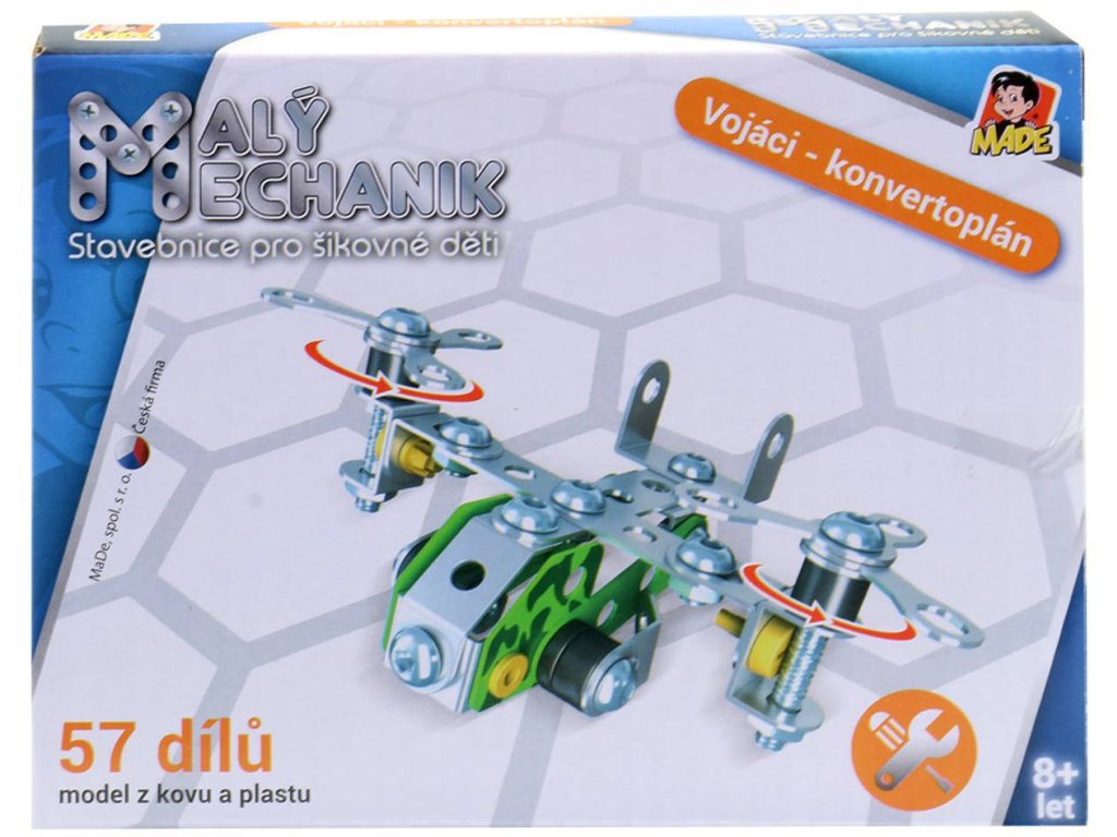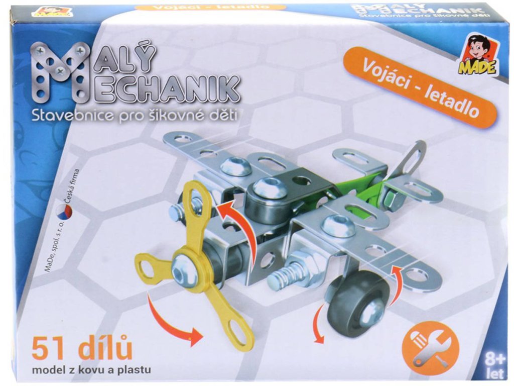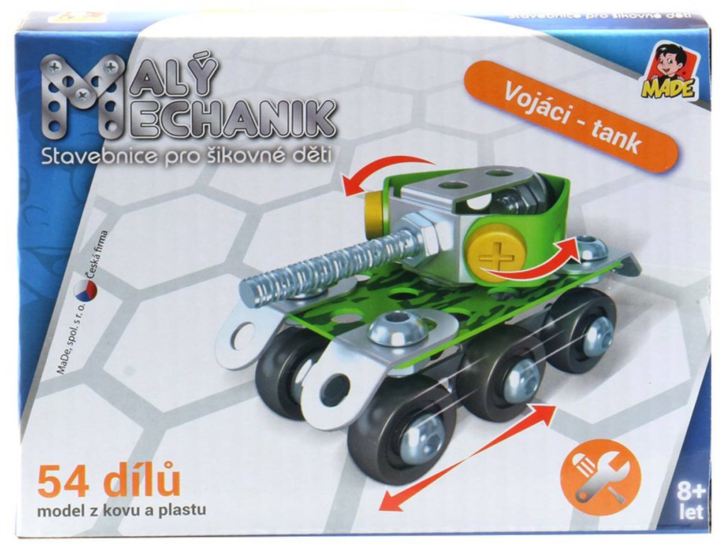 Modely vojenské techniky složíš ze 47-59 kovových součástí a plastových doplňků. Zažij vzrušující zážitek z dokončení vlastního výtvoru. Kvalitní kovová stavebnice v šesti variantách provedení.Malý mechanik je označení stavebnic, které na náš drh dodává společnost MaDe. Jedná se o stavebnice na podobném principu jako legendární stavebnice Merkur, které jsou navíc obohaceny o plastové