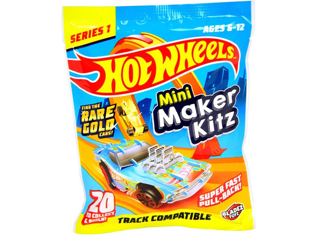 Mini Hot Wheels stavebnice s překvepením, v sáčku. Model auta s pohonem na zpětné natažení. Různé druhy.Postav si vlastní mini autíčko a jezdi s ním po dráhách Hot Wheels! Autíčko je natahovací. Nevyžaduje lepidlo ani baterie. Najdi vzácná zlatá autíčka! Autíčka jsou zabalena v sáčku. Celkem můžeš sestavit 20 modelů aut.