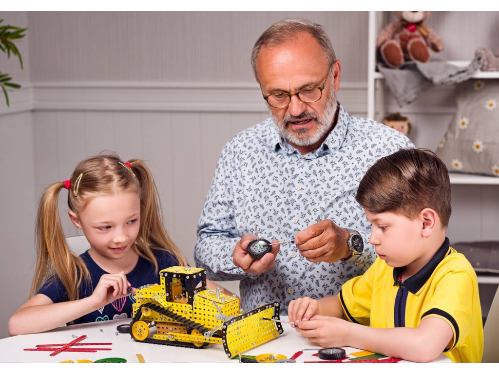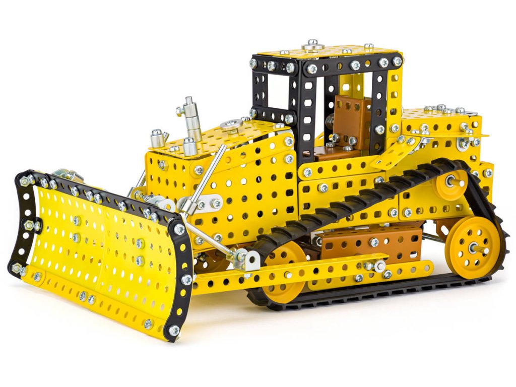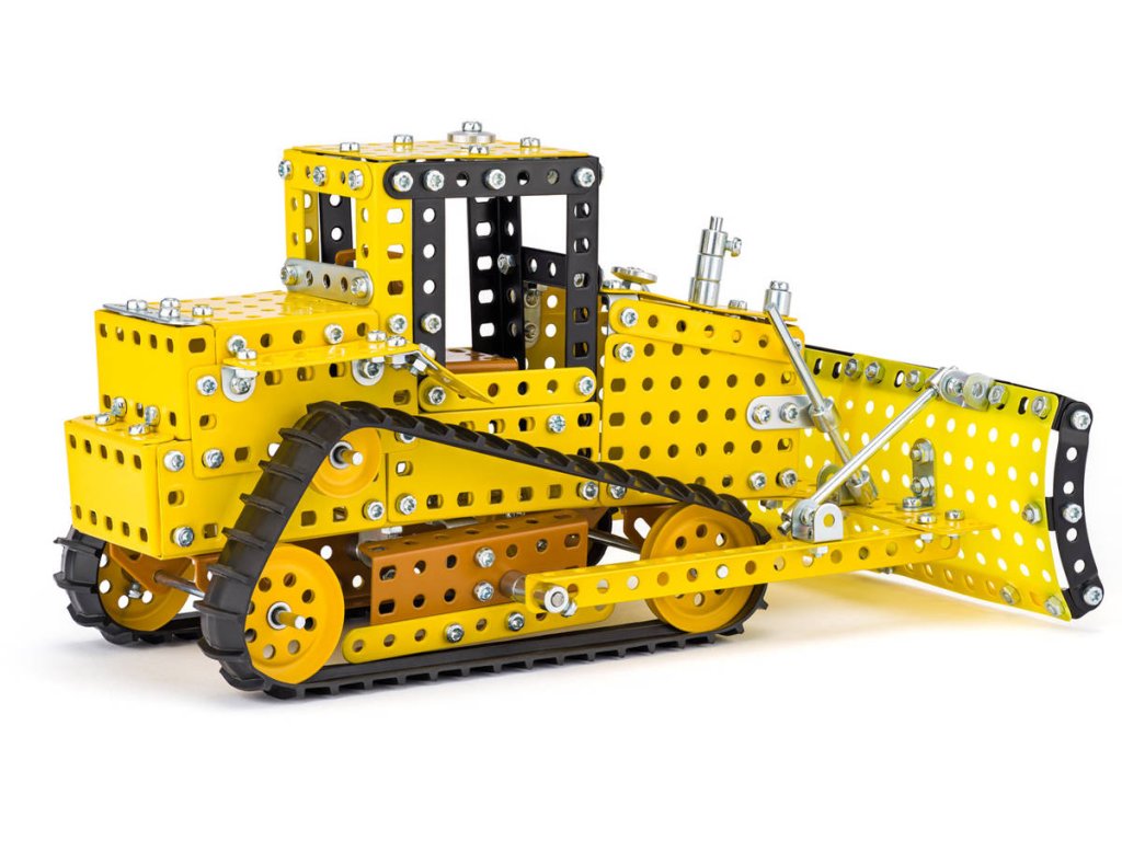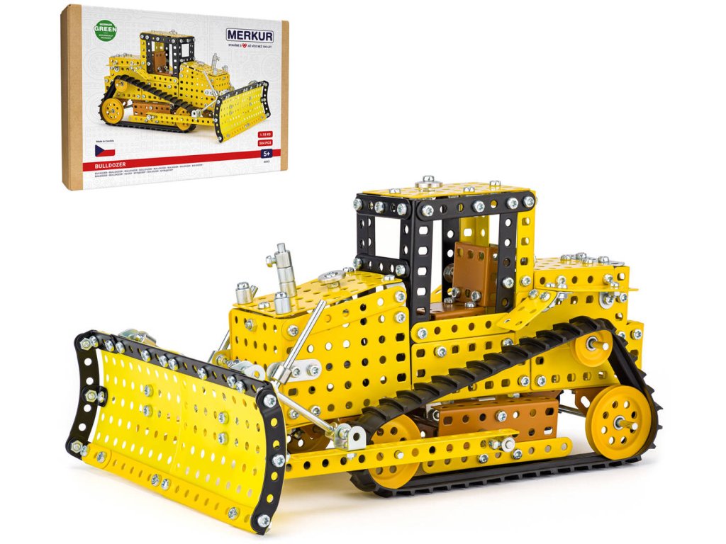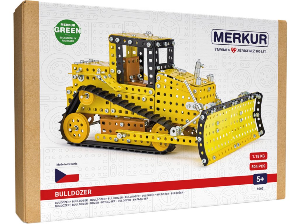 MERKUR 6063 - Buldozer. Kvalitní česká kovová stavebnice.Klasická stavebnice Merkur obsahuje součástky nutné pro stavbu buldozeru. V balení najdete podrobný návod, Merkur sadu nářadí a unikátní Merkur díly. Merkur díly jsou univerzální a tak vás neomezí v