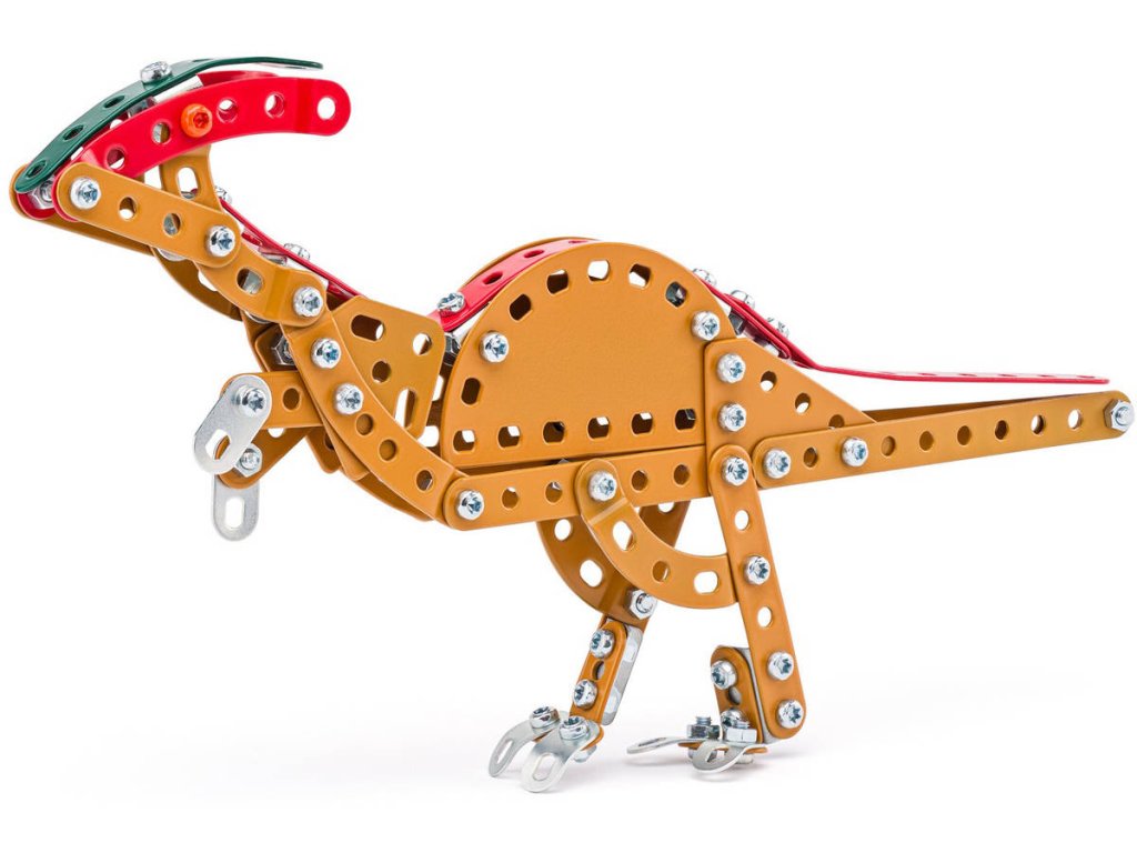 MERKUR 8074 Dinosauři: Parasaurolophus. Kvalitní, kovová konstrukční stavebnice, 162 dílků, model 20cm, součástí návod + pracovní nářadí. Vyrobeno v Česku.Kovový model pravěký ještěr Parasaurolophus z kolekce dinosaurů obsahuje součástky nutné pro sestavení tohoto modelu. V balení najdete podrobný návod, Merkur sadu nářadí a unikátní Merkur díly. Merkur díly jsou univerzální a tak vás neomezí v jakékoli modifikaci a nápadu. Stavebnici tak můžete sestavit podle přiloženého návodu nebo čistě podle svých představ. Se sestavenými modely si lze hrát, jsou velmi odolné. Podporuje a rozvíjí manuálních schopnosti, logické myšlení, soustředění.