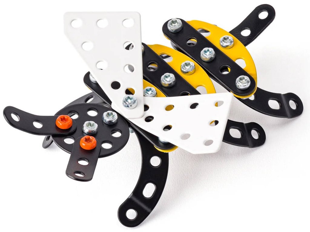 MERKUR 8203 Brouci: Včela. Kvalitní, kovová konstrukční stavebnice, 55 dílků, model 13cm, součástí návod + pracovní nářadí. Vyrobeno v Česku.Kovový model Včely z kolekce hmyzáků obsahuje součástky nutné pro sestavení tohoto modelu. V balení najdete podrobný návod, Merkur sadu nářadí a unikátní Merkur díly. Merkur díly jsou univerzální a tak vás neomezí v jakékoli modifikaci a nápadu. Stavebnici tak můžete sestavit podle přiloženého návodu nebo čistě podle svých představ. Se sestavenými modely si lze hrát, jsou velmi odolné. Podporuje a rozvíjí manuálních schopnosti, logické myšlení, soustředění.