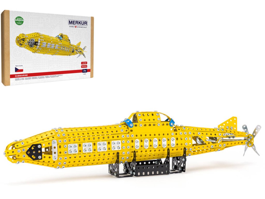 MERKUR 6070 - Ponorka. Kvalitní česká kovová stavebnice.Klasická stavebnice Merkur obsahuje součástky nutné pro stavbu ponorky. V balení najdete podrobný návod, Merkur sadu nářadí a unikátní Merkur díly. Merkur díly jsou univerzální a tak vás neomezí v