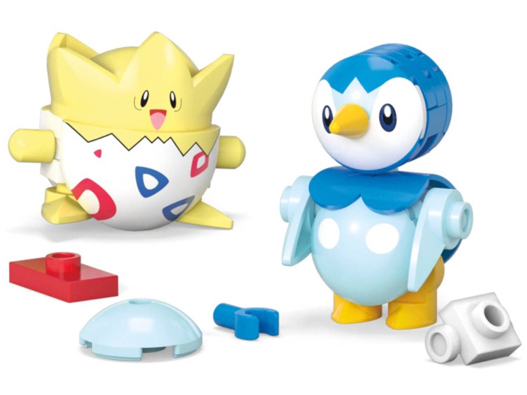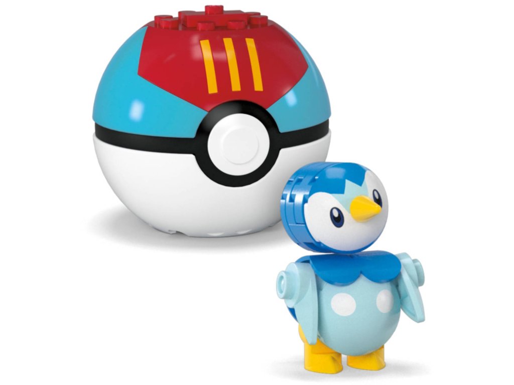 Pokémon MEGA Construction Set. Herní set obsahuje 2 Pokébally a 41 dílků stavebnice pro sestavení Pokémona (Piplup a Togepi).MEGA Pokémon Pokéball Togepi a Piplup je stavebnice, díky které si můžete sestavit dvě roztomilé figurky. Otevři Pokéball, vysyp kostky a postav si svého vysněného Pokémona – jako bys ho právě přivolal! Hotové figurky můžeš nastavit do zábavných nebo bojových pozic a popustit uzdu své fantazii. Pokémona si také můžeš vystavit – stačí ho postavit na Pokéball a umístit třeba na polici. Stavění z kostek není jen zábava – rozvíjí také kreativitu a učí řešit problémy. Dílky se dají kombinovat s dalšími sadami Pokémonů od MEGA, které se prodávají samostatně.