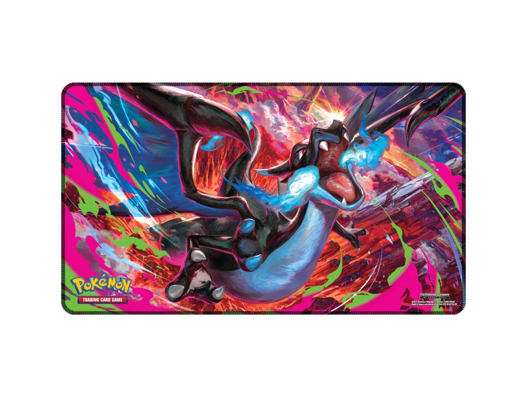 Hrací podložka z exkluzivní sady Pokémon TCG: Mega Charizard X ex Ultra-Premium Collection (vydané v listopadu 2025) je prémiový herní doplněk navržený pro sběratele i soutěžní hráče. Podložka vyniká dynamickým vizuálem a vysokou kvalitou zpracování, která odpovídá standardům Ultra-Premium kolekcí.