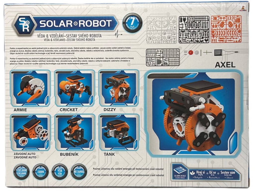 Postav a experimentuj se sedmi jedinečnými a zábavnými solárními roboty. Žádné baterie nejsou potřeba, pouze sestav solární panel a čerpej energii ze slunce. Objev skutečné využití solární technologie a její téměř neomezený potenciál.