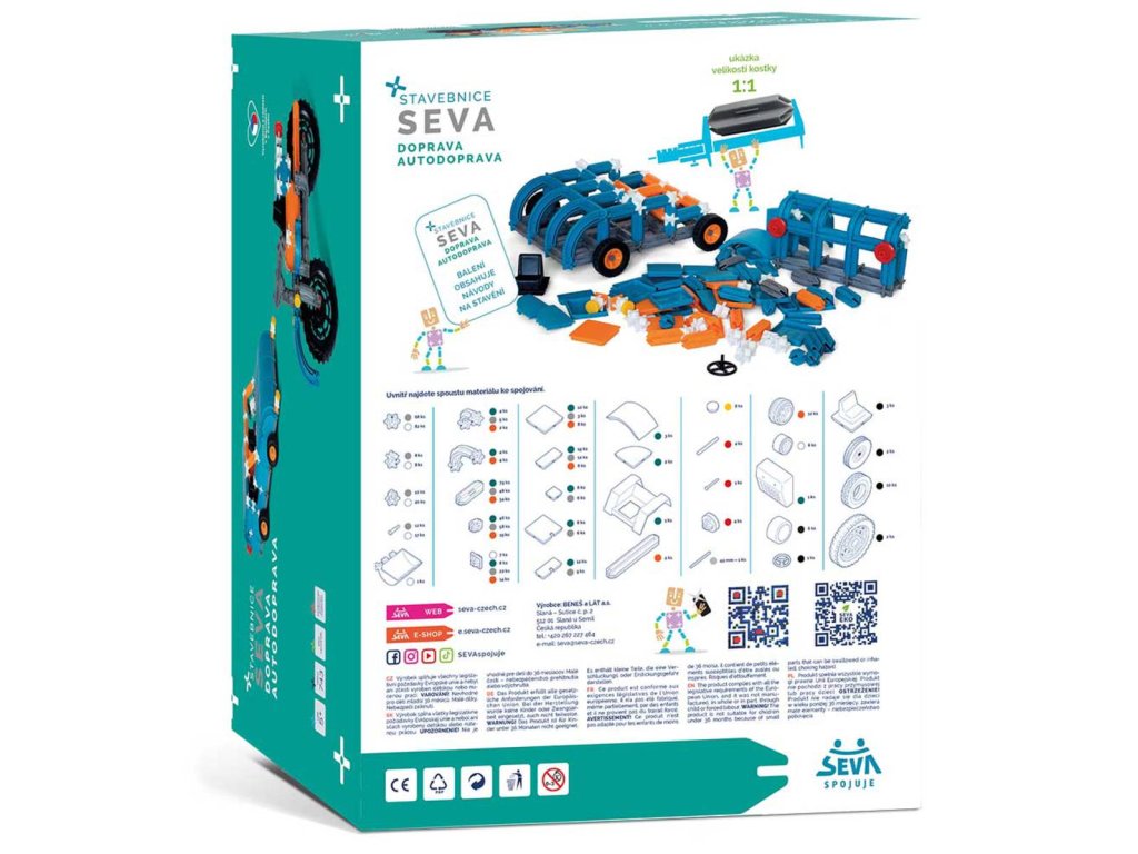 Stavebnice SEVA je kreativní, dětem rozvíjí mysl i manuální zručnost a její variabilita určitě osloví i Vás ...můžete si z ní postavit funkční vozidla, stroje, letadla, budovy, nábytek, lodě, vlaky...
