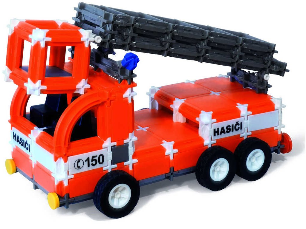 plošinou nebo vůz s velkou cisternou, která se navíc dá i natáčet. Najdete v ní i dílky pro sestavení velitelského, neboli technického vozu, díky kterému budete zaručeně na místě nehody jako první. Všechny modely si