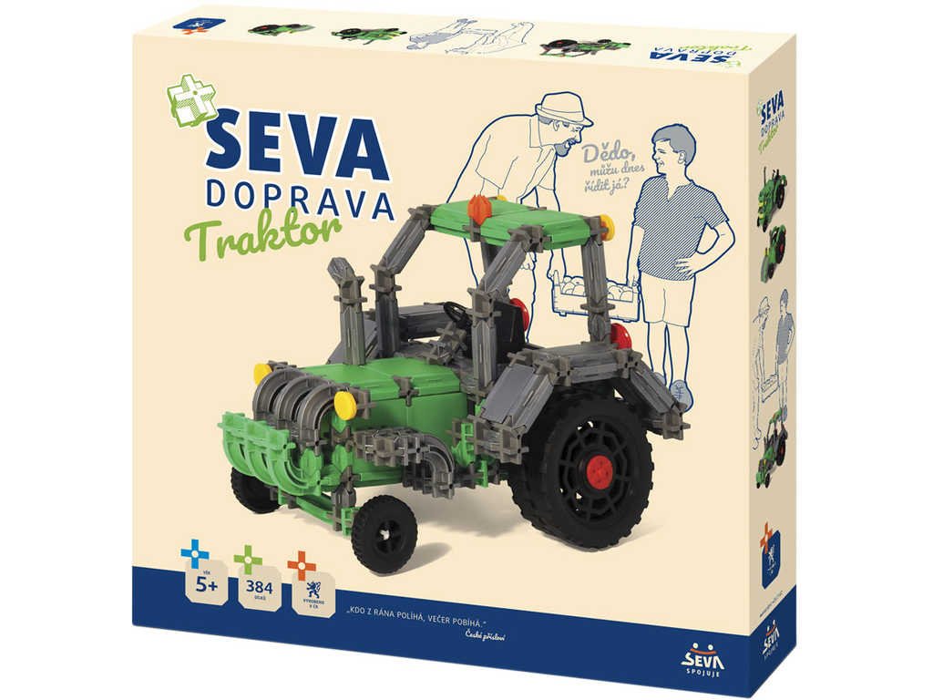 "Dědo, můžu dnes řídit já?" Kdo nechtěl jako malý někdy řídit traktor. SEVA DOPRAVA - Traktor Vám nabízí hned tři různé traktory k sestavení. A nemusíte skládat pouze je. Ve stavebnici SEVA se fantaziimeze nekladou.