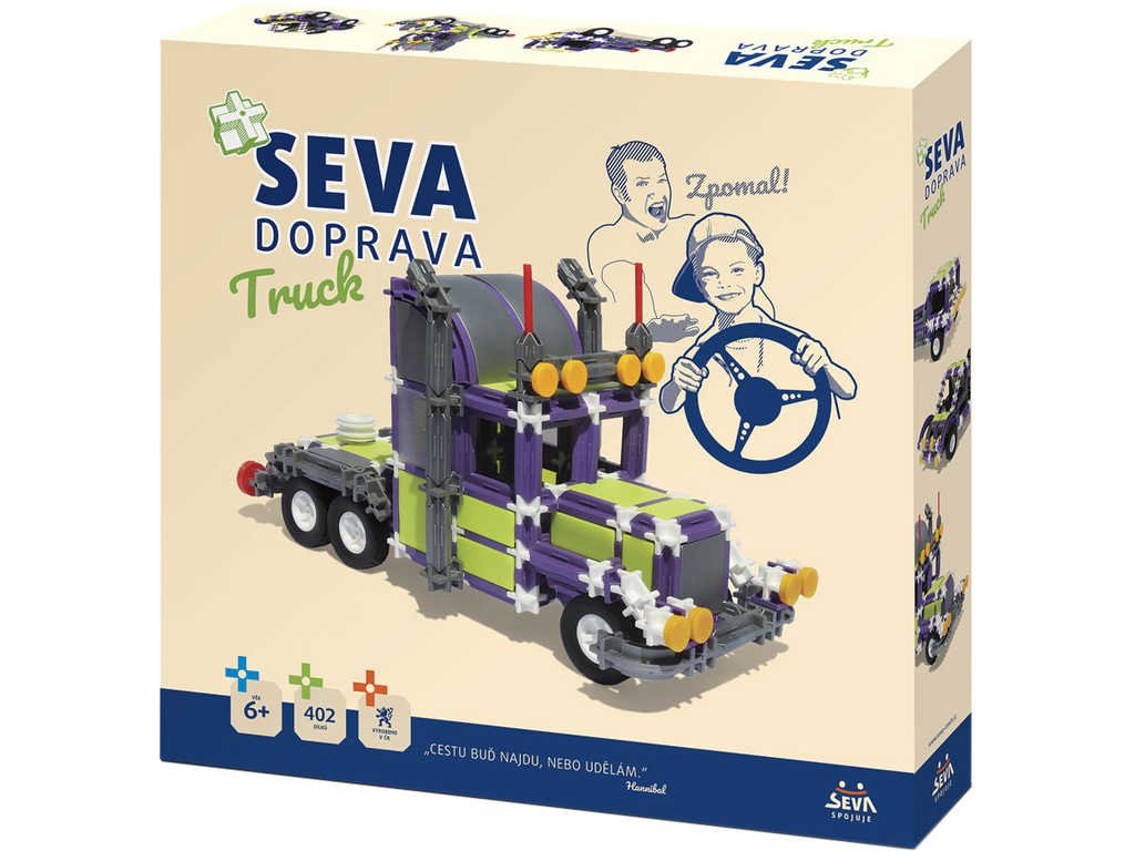 "Pomáhám tátovi řídit kamion!" Se stavebnicí SEVA DOPRAVA Truck můžete stavět silný tahač, buginu, malý náklaďák a celou řadu dalších strojů a s nimi jezdit kam se vám jenom zachce... Hlavně se nenechteve své fantazii omezovat.