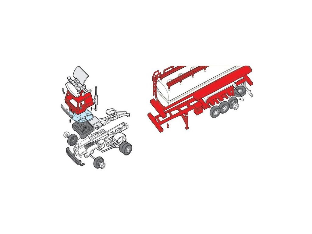 barevné nebo pokovené. Kombinací dílů shodných typů vytvářet nové varianty a udělat z něj téměř maketový model nebo jej využít jako základ pro stavbu zcela nového modelu auta. Pro