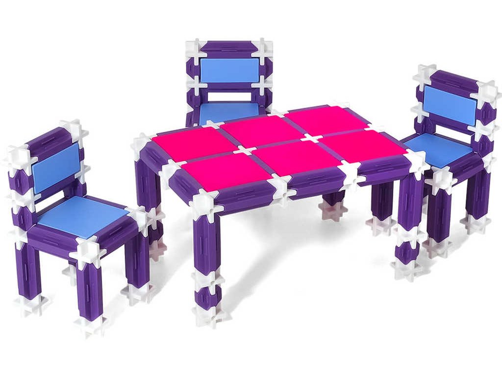 jsou součástí balení), nebo své vlastní figurky či malé panenky. Poskládat si můžete např. moderní rohovou kuchyňskou linku samozřejmě se dřezem na mytí nádobí a vestavěnou lednicí. K tomu kuchyňský stůl se židlí nebo