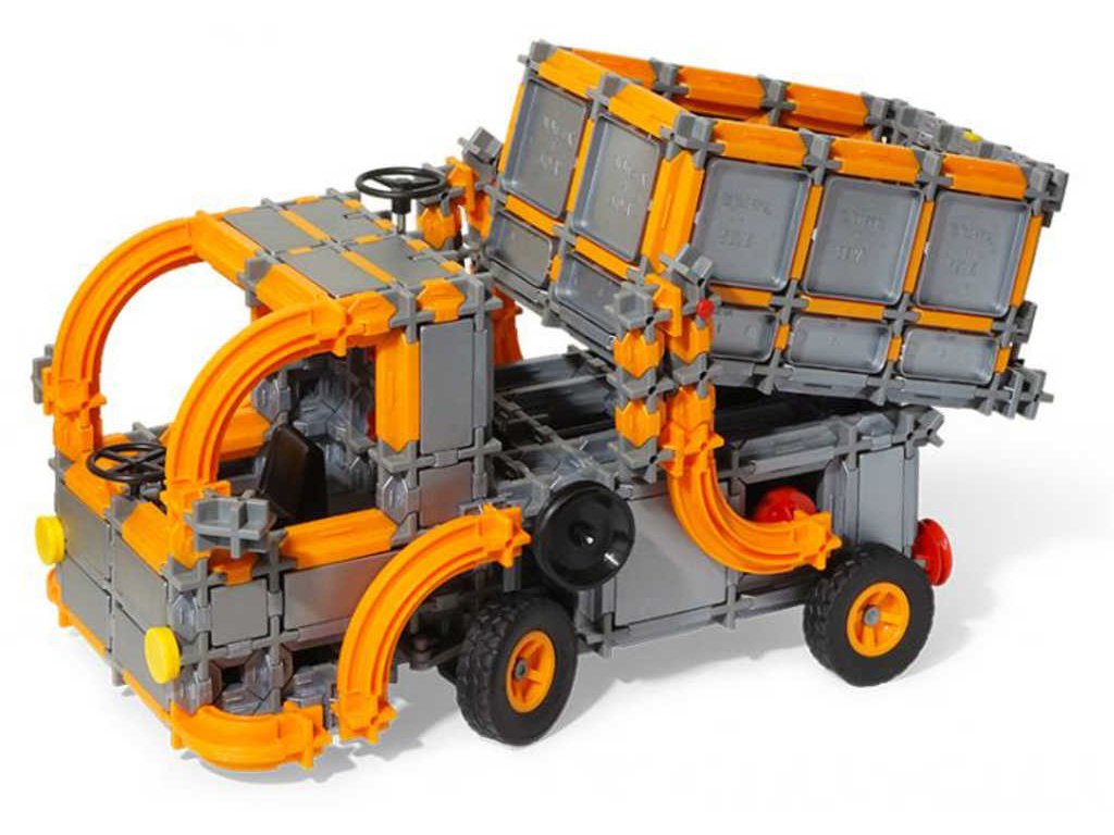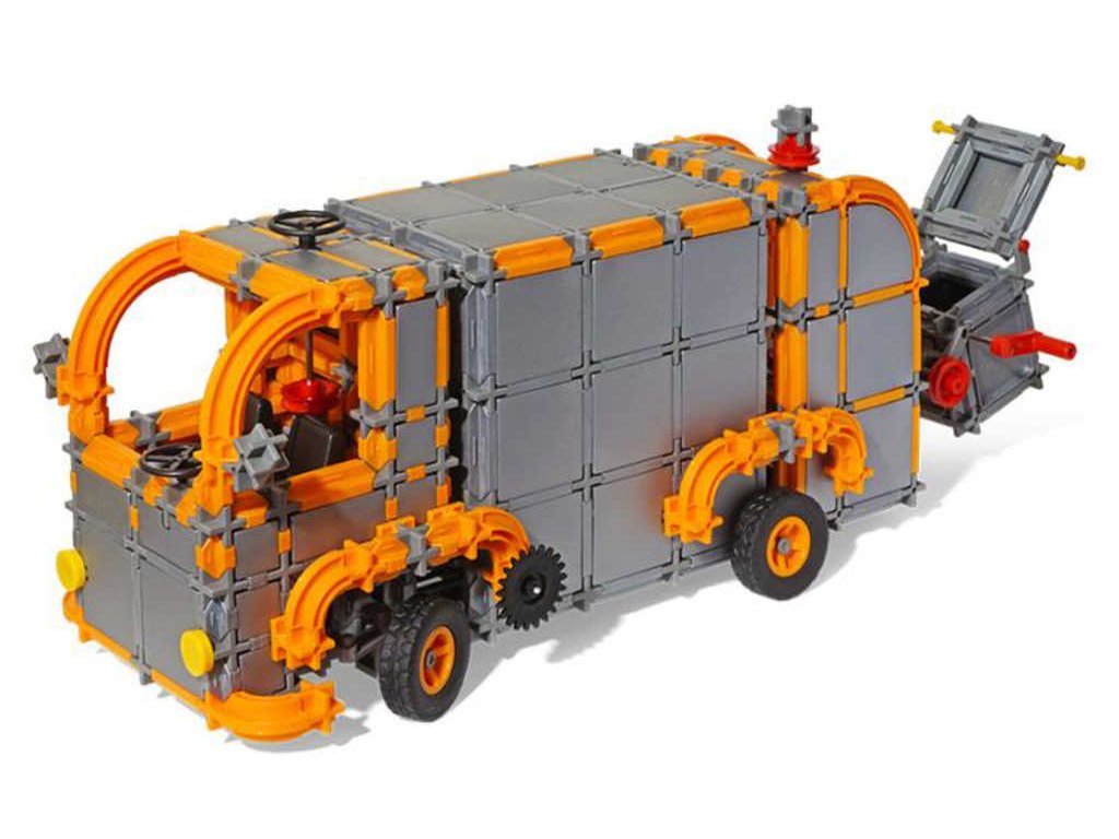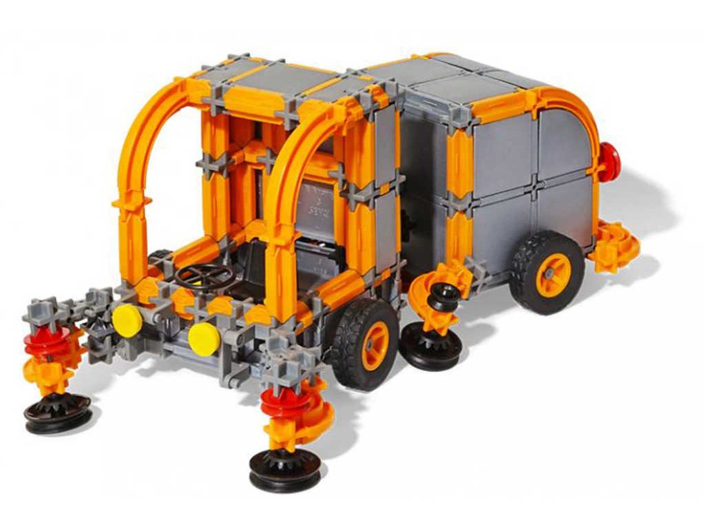 kontejnerový nakladač/vykladač, který díky ozubeným kolům vyloží či naloží jakýkoliv kontejner. Nebo si sestavte čisticí vůz, který se díky kloubu dá i zalomit. A pokud venku napadne sníh, s našim sněžný