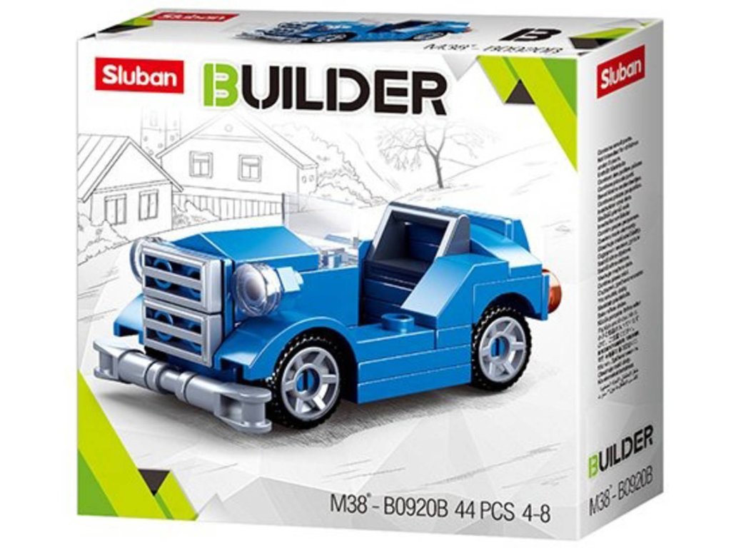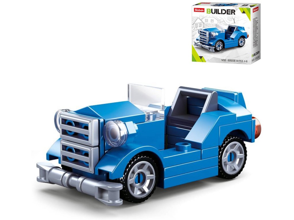 SLUBAN Builder (M38-B0920B) Auto veterán modrý kabriolet. Model auta. Kvalitní plastová stavebnice. Lze kombinovat s většinou ostatních známých stavebnic.Stavebnice veterána kabrioletu v modré barvě pro malé stavitele od 4 let. Stavebnice ze série Sluban Builder, Malý stavitel, obsahuje 44 dílků a tištěný návod. Stavebnice Sluban pro malé i velké. Postav si svůj vlastní příběh!