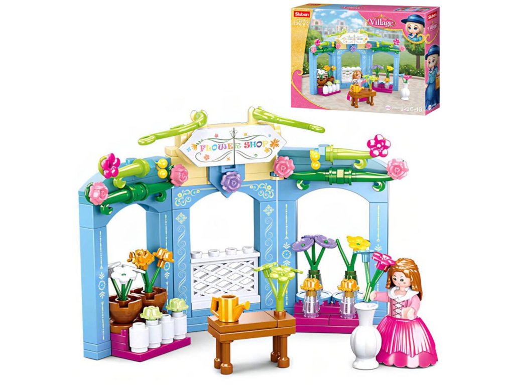 SLUBAN Girls Dream (M38-B0905) Dobové květinářství. Kvalitní plastová stavebnice. Lze kombinovat s většinou ostatních známých stavebnic. Součástí 1 figurka.Dobový koutek prodejny s kytičkami ze série stavebnic Sluban Girls Dream Village. Stavebnice obsahuje 154 dílků, jednu figurku, nálepky a tištěný návod. Stavebnice Sluban pro malé i velké. Postav si svůj vlastní příběh!