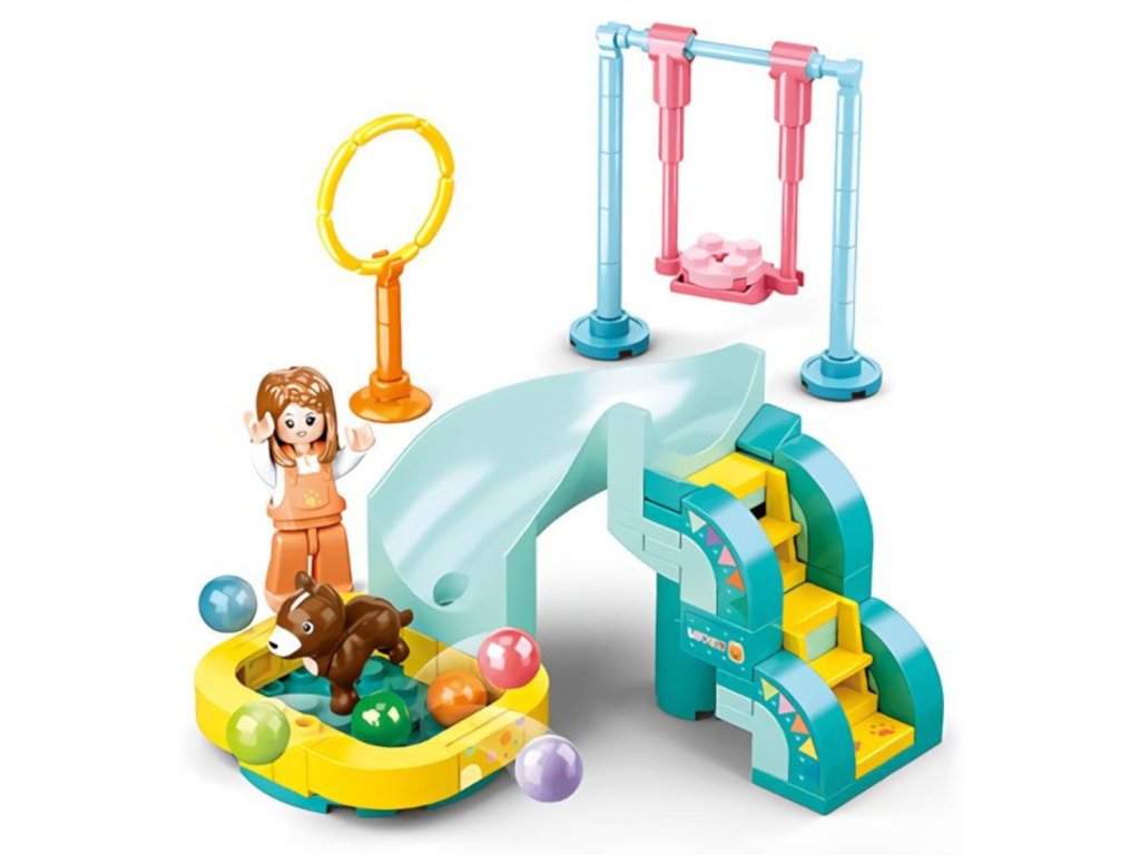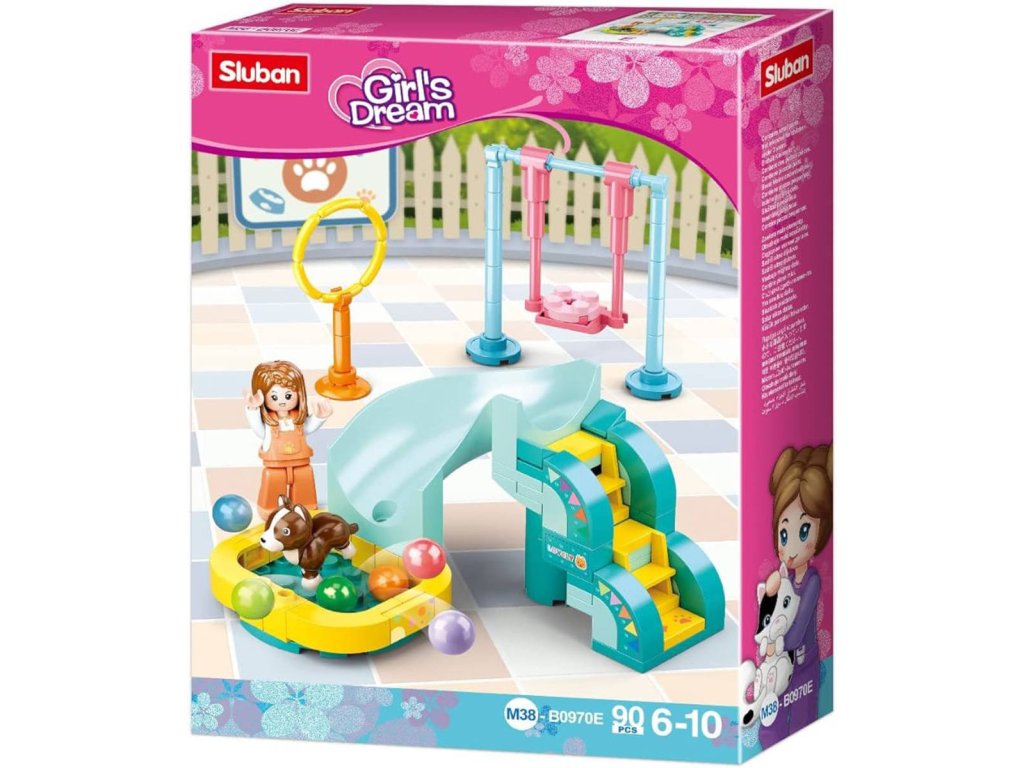 SLUBAN Girls Dream (M38-B0970E) Hřiště pro pejsky. Kvalitní plastová stavebnice. Lze kombinovat s většinou ostatních známých stavebnic. Součástí 1 figurka.Stavebnice Sluban je možno kombinovat s podobnými stavebnicemi mnoha dalších známých značek. Dílky jsou vyrobeny z certifikovaného nezávadného a odolného ABS plastu. Přesně do sebe zapadají a drží. Výrobce má svůj inovativní vývojový tým a budete překvapeni kvalitním zpracováním jak dílků, tak figurek. Zejména figurky jsou pýchou firmy Sluban. Mají realistický tvar, hlavičku i zápěstí na pohyblivém kloubu, v pase se otáčejí o 360° a nožičky jsou pohyblivé ve směru chůze a zároveň si zachovaly plnou kompatibilitu s kostičkami. Je to malá figurka s velkou budoucností.
